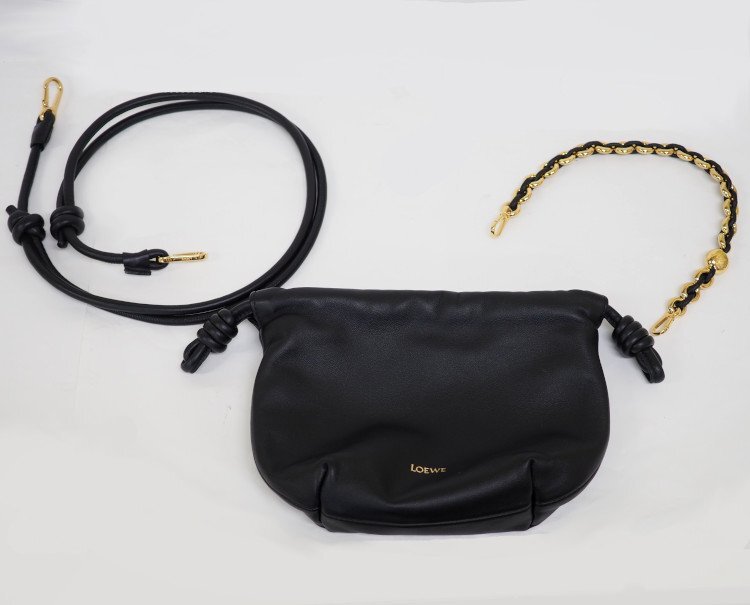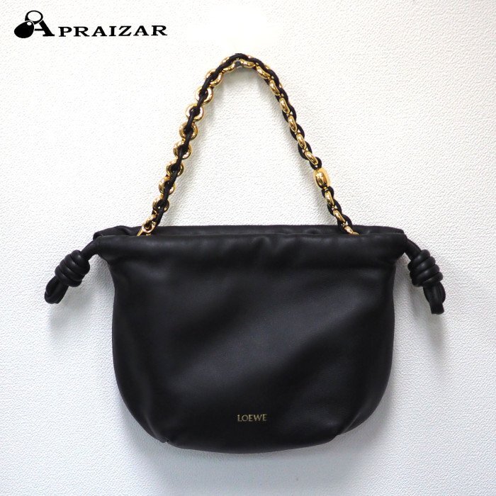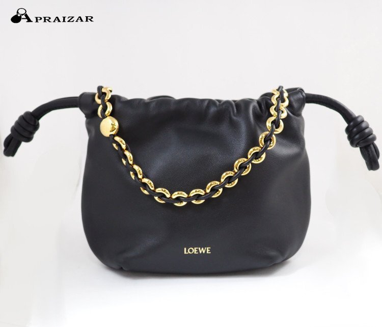 LOEWE ロエベ フラメンコパース バッグ ミニ レザー ブラック です。 上質な柔らかく滑らかなレザーを使用したエレガントなバッグです。フラメンコラインの美学にインスパイアされた印象的なたわみのあるデザインを、シグネチャーであるサイドノットやドーナツチェーンなどのディテールによって引き立てています。 あまり使用感のない綺麗な商品です。ブラウザの環境や設定、モニタの種類により色味が若干異なる場合がございますので、予めご了承の程お願い致します。皆様のご落札をお待ちしております。 |