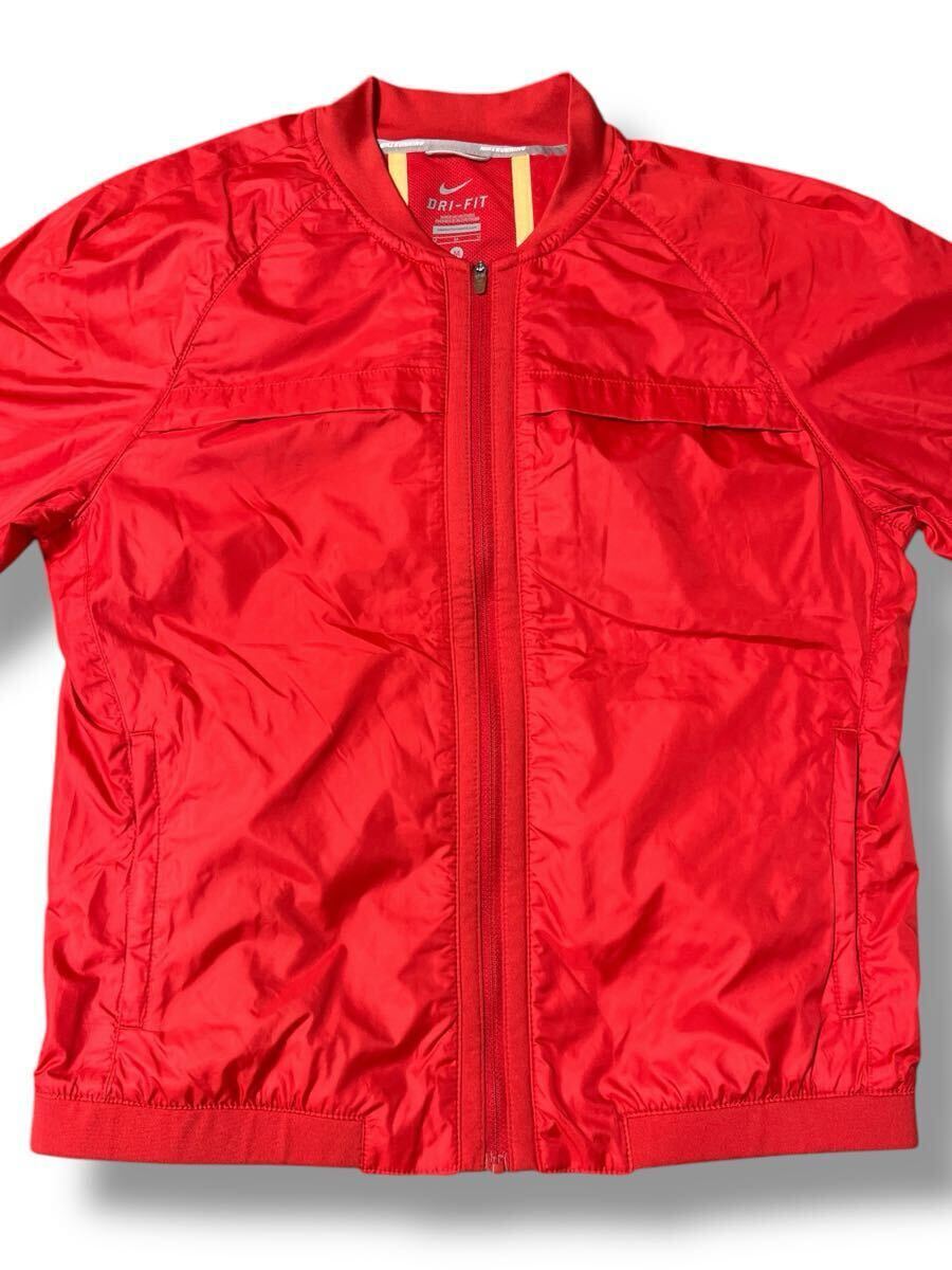 NIKE DRI-FIT ナイキ ランニングジャケット M レッド●洗濯プレス済●赤ジャケット スポーツ アウトドア ポリエステル ジャンパー 古着/242