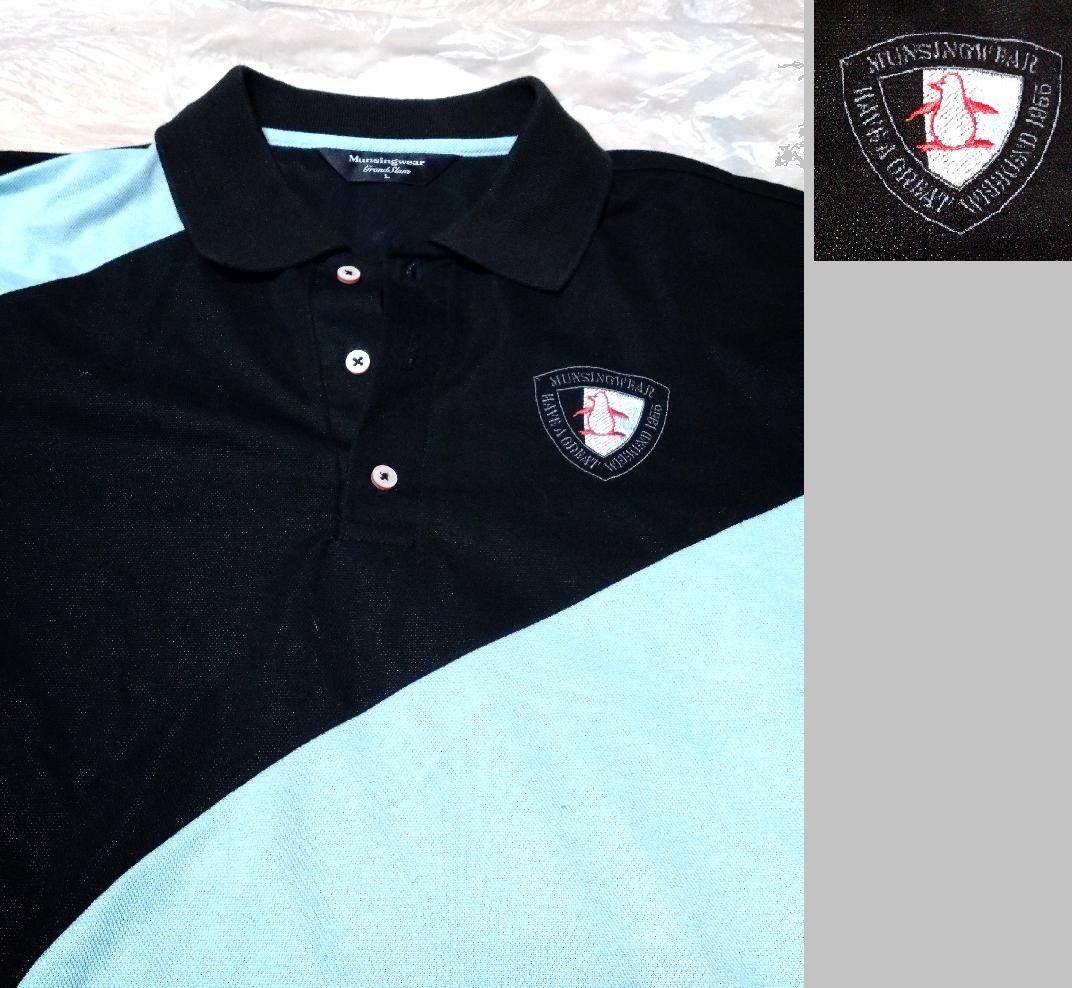 【即決/日本製】 マンシングウェア グランドスラム/半袖/ポロシャツ/Lサイズ/黒×水色/送料430円~ | |||