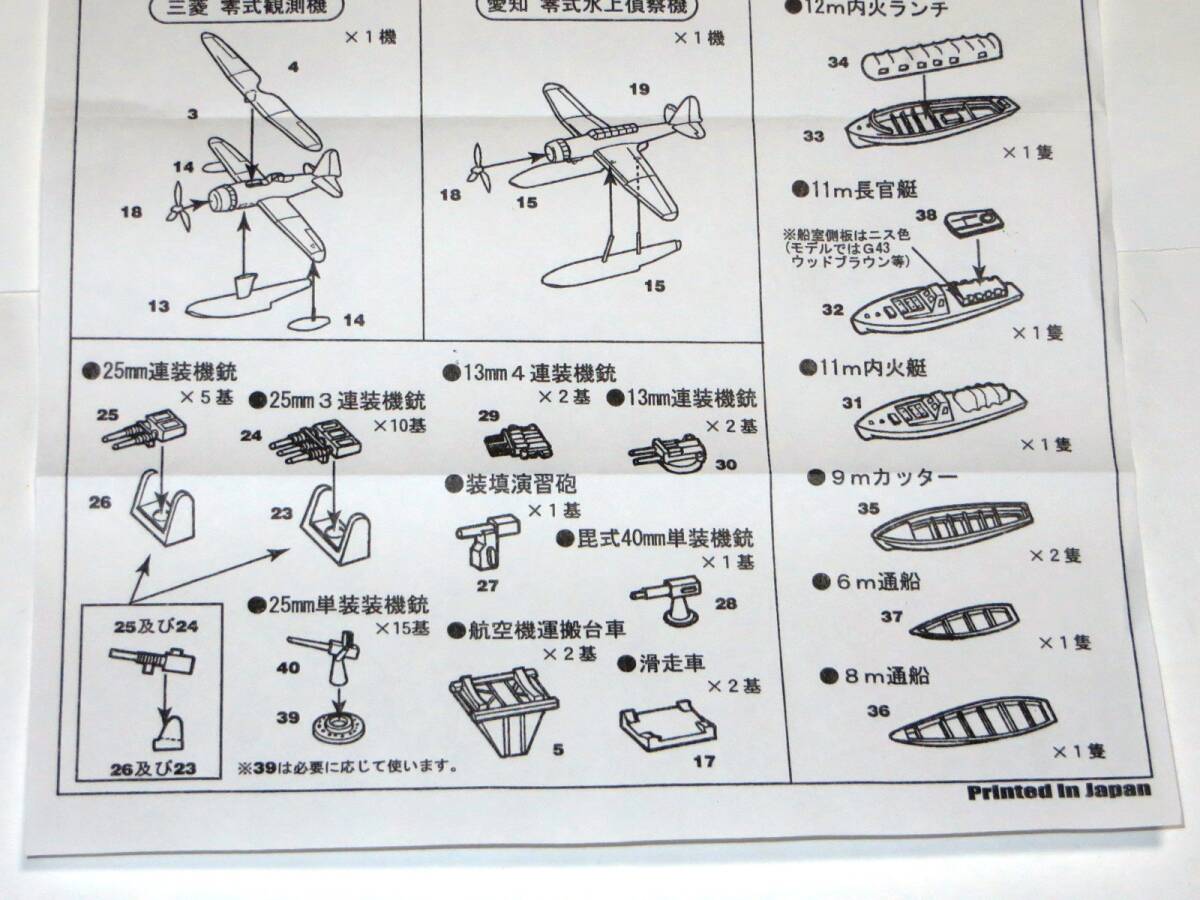 ※同じものが複数点ある都合、値札の有無や傷み具合などの差異がある場合がございます ・艦船模型の自作、改造にお使いいただける装備パーツのセットです |