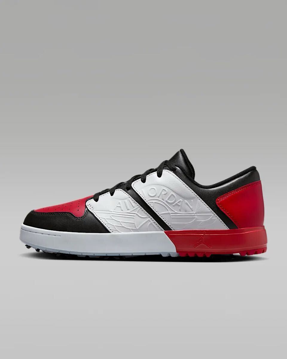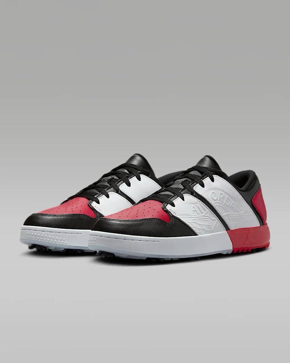 アイコニックなJordanスタイルと最新のゴルフテクノロジーを融合させ、ゴルフコースで瞬時に定番スタイルを演出するジョーダン NU レトロ 1 G。 ラバーヒールと前足部の耐久性に優れたプラスチックプレートが、安定感と快適なクッショニングを提供します。 取り外し可能な7本のスパイクでトラクションを強化し、鋭いスイングにもコース上での歩行にも対応。