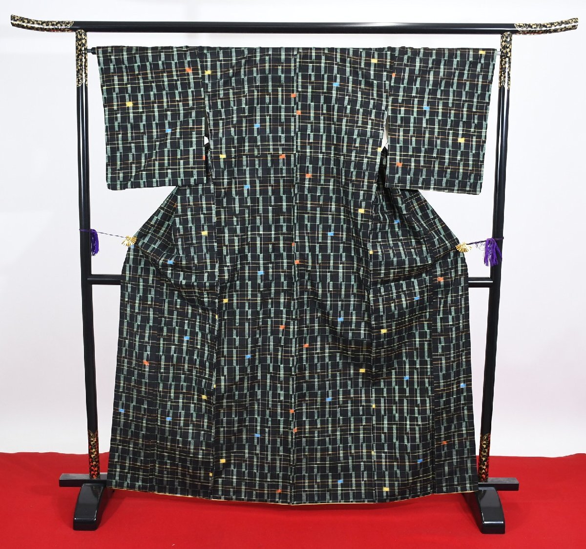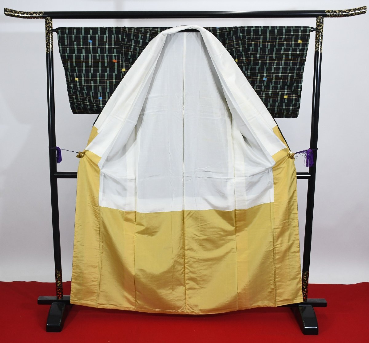 サイズ | ▼身丈 (背中から) 158cm ▼裄丈 67cm ▼袖丈 49cm ▼後巾 29.5cm ▼前巾 23cm |