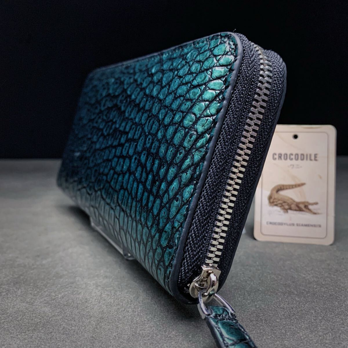 クロコダイルと呼ばれている品種のワニ革は人気が高く、独特の模様と凹凸が魅力で、高級ブランド品を中心にクロコダイルが多く使われています。今回はワニ革の代表格である<シャムクロコダイル>の腹革部のラウンドファスナー財布を出品します。