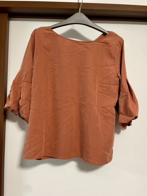 【商品の説明】ふんわり袖のブラウス。オレンジ色。美品。