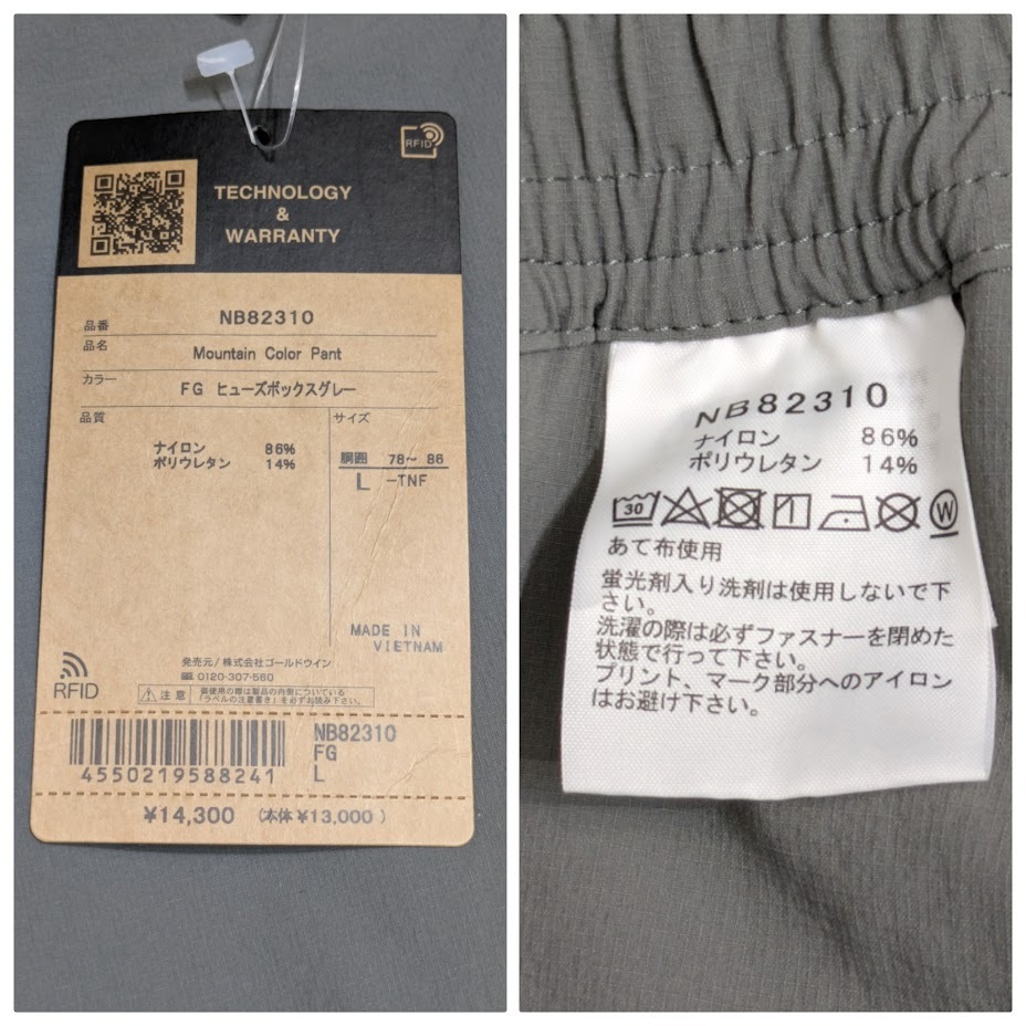 未使用品 THE NORTH FACE ノースフェイス マウンテンカラーパンツ MOUNTAIN COLOR PT NB82310 FG ヒューズボックスグレー サイズ L