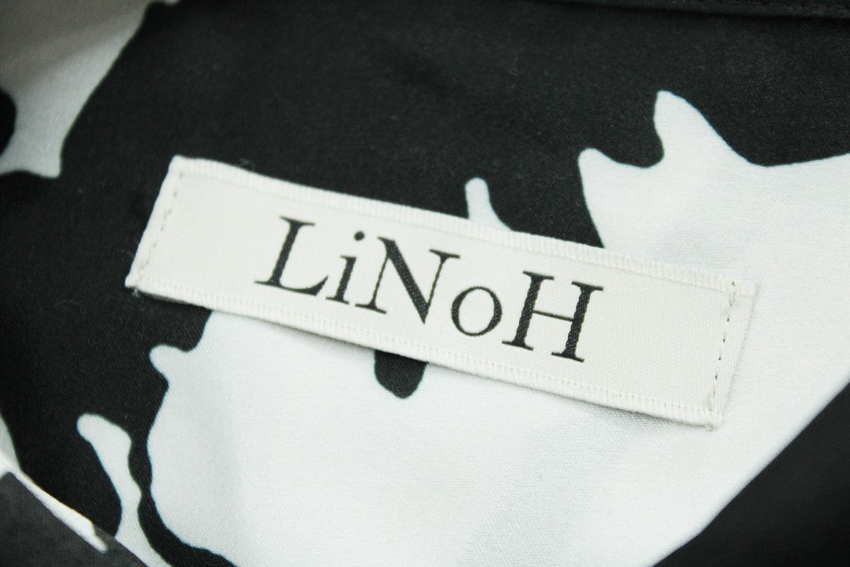 ☆美品☆LiNoHリノー/メンズ/PANSYプリント長袖サテンシャツ:2/黒系yw308