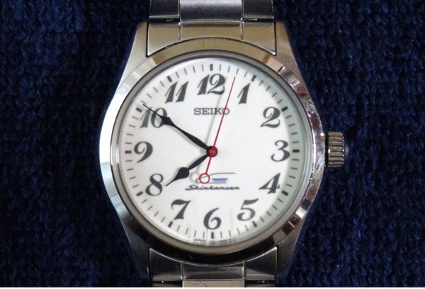 文字盤には新幹線のロゴマークや「shinkansen」の文字が