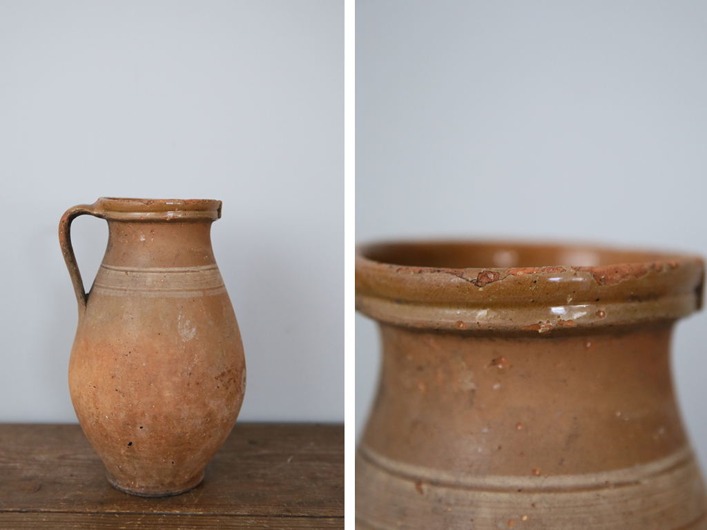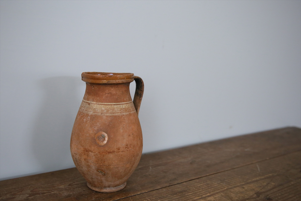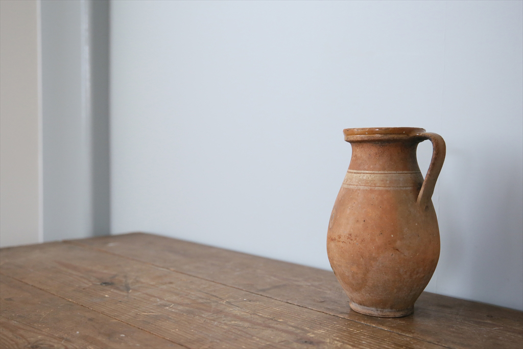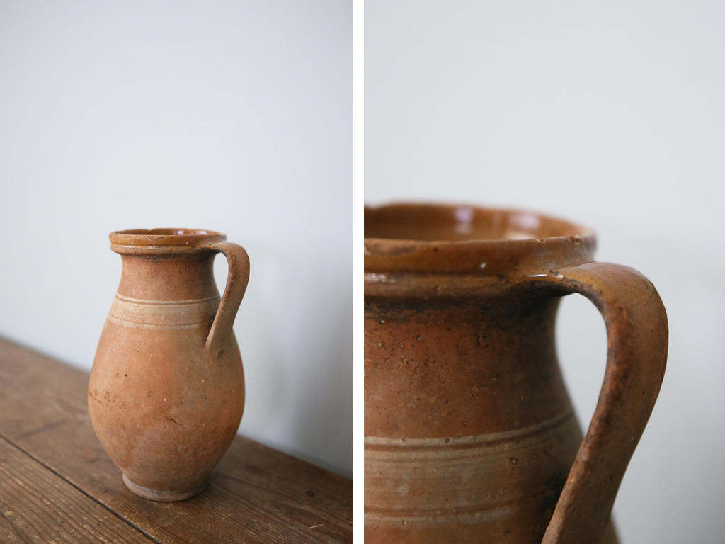 フランスの田舎で見つけた古い陶器製ボトルです。