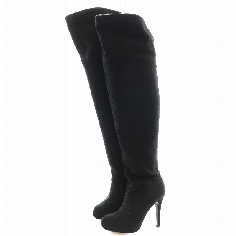 ツルバイマリコオイカワ TSURU By MARIKO OIKAWA ニーハイブーツ ロングブーツ ヒール 35 黒 ブラック /AN27 ■OF レディース