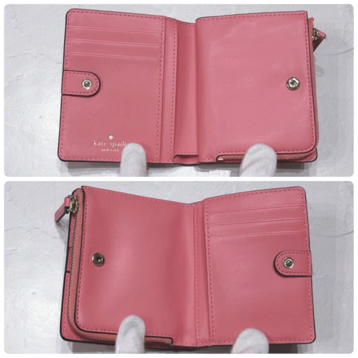 可愛らしいピンクカラーにロゴがポイントになったkate spade折り財布です!
