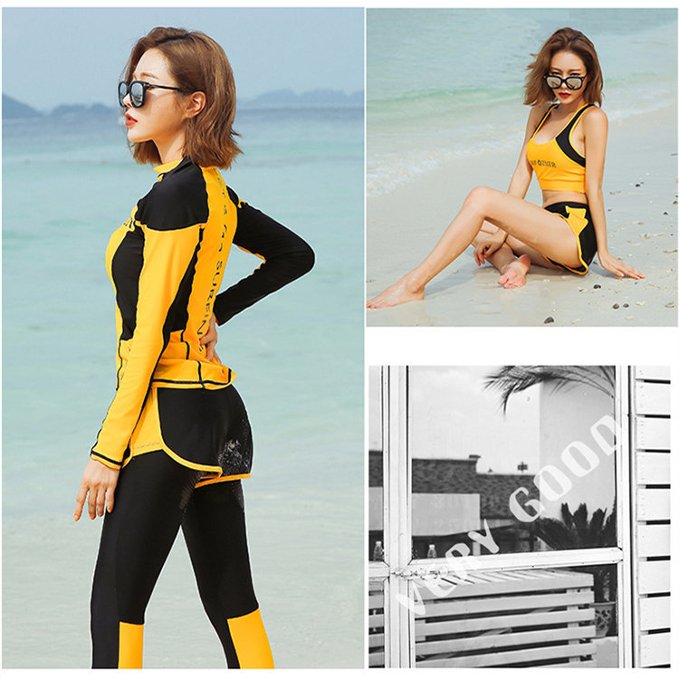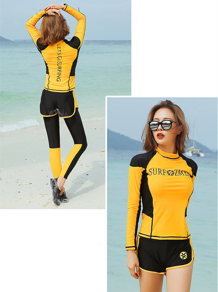 水着 レディース 体型カバー フィットネス水着 長袖ラッシュガード ショートパンツ 競泳用 紫外線対策 女性用 潜水用 黄色 水に潜る | |||