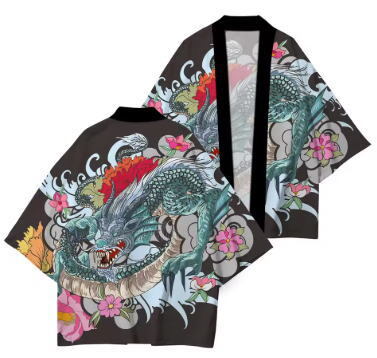 女性のための伝統的なプリント着物,日焼け止め,快適なカーディガン,柔らかい生地,ビーチや休暇用 色: グレー 龍 サイズ: S