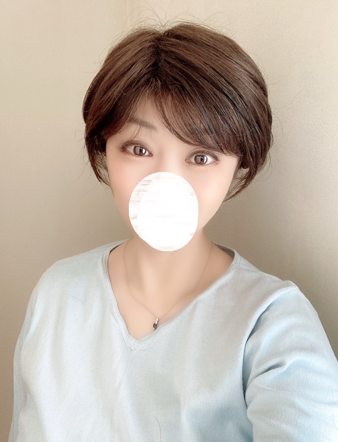 ■髪の長さ(全てキャップ際から):前髪約11cm、サイド(もみあげ)約9cm、ネープ(襟足)約7cm、トップ約18cm