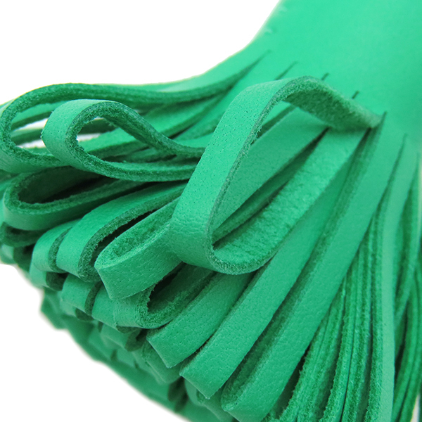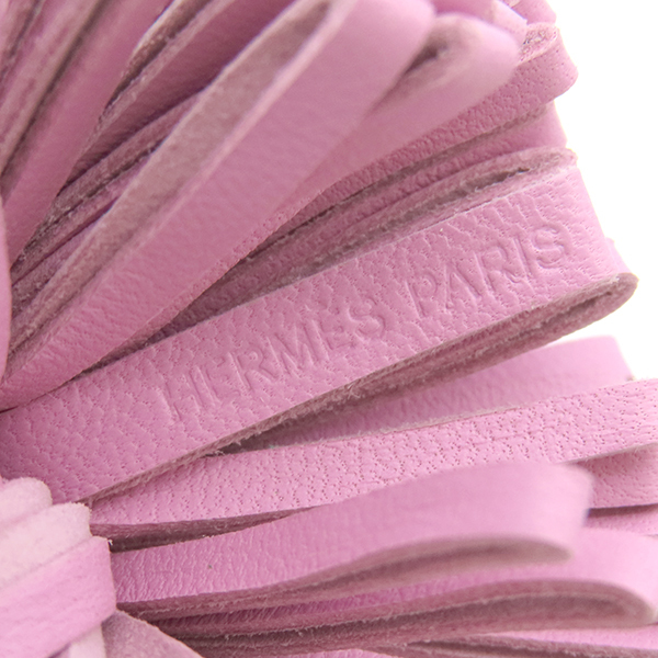 エルメス キーリング カルメン ウノドス ラムスキン グリーン 緑 ピンク フリンジ キーホルダー 中古
