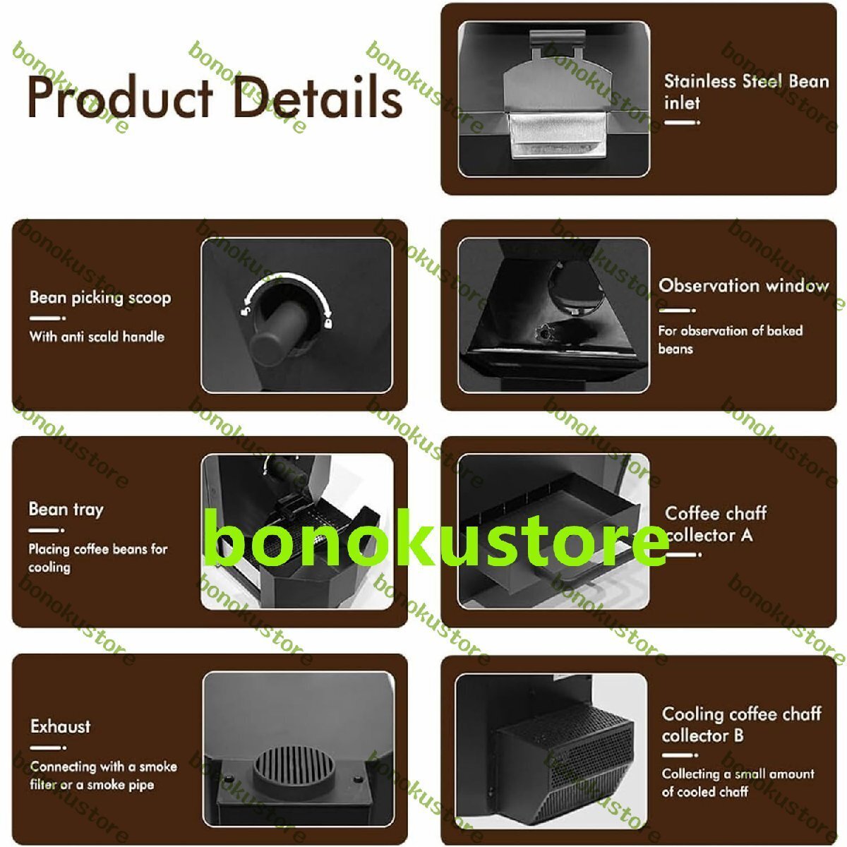 1000Wプロフェッショナルコーヒー豆ロースター、350-400g電気コーヒー豆焙煎機、スマートコントローラー、煙フィルター付き、カフェ、オフィス、ホテル、会議室用