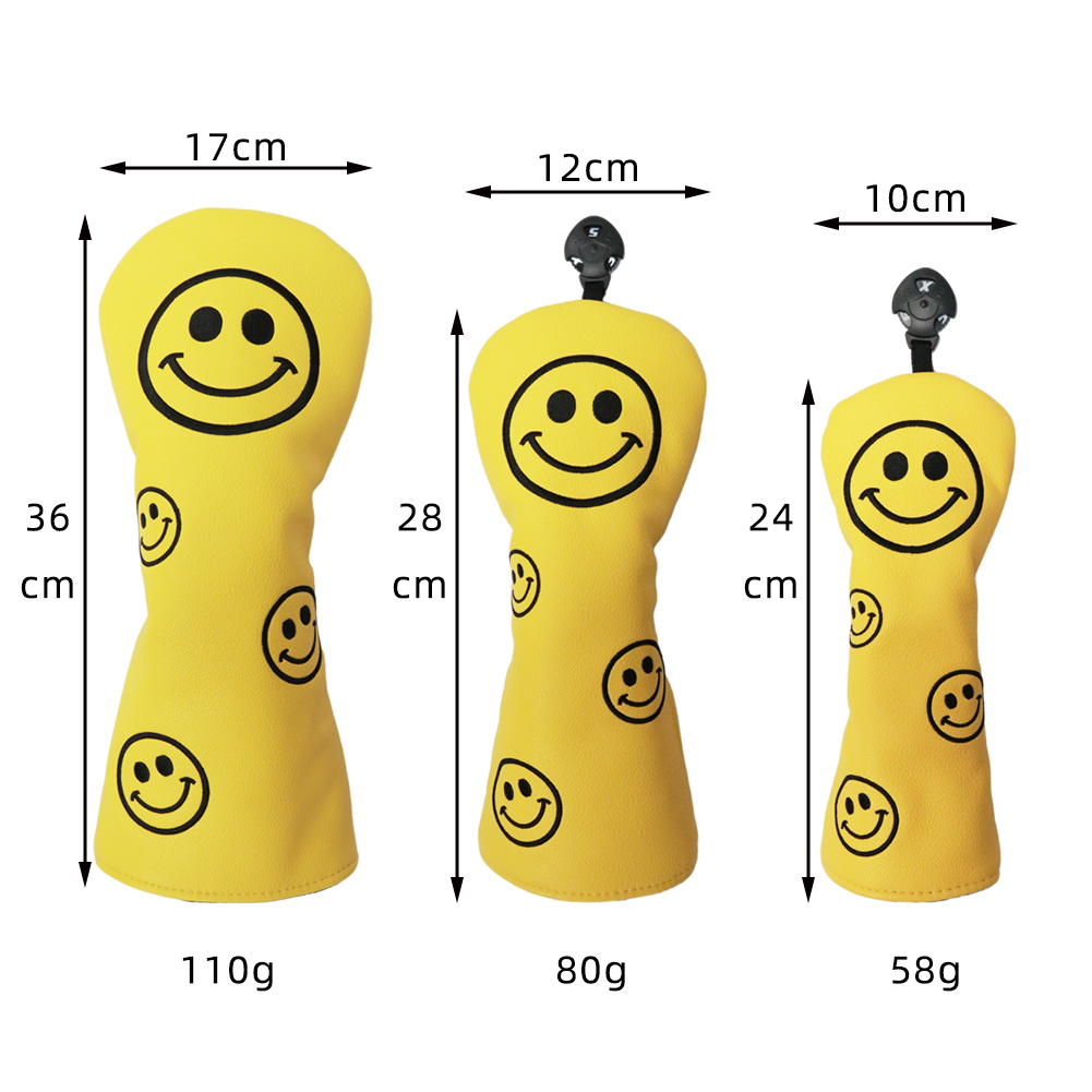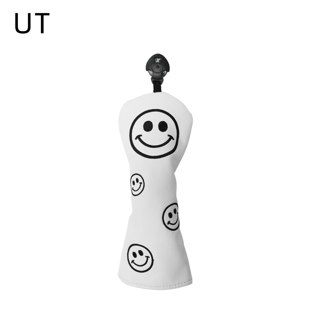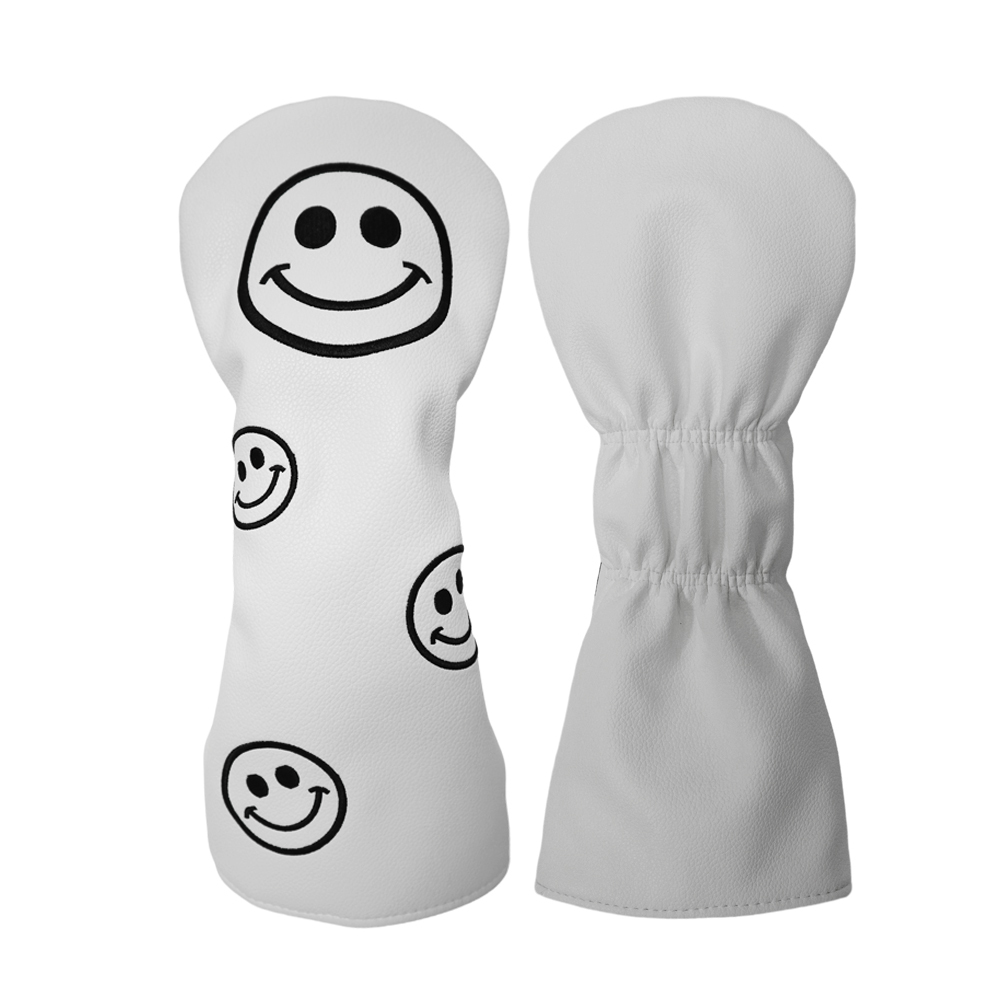 高級PUレザー ゴルフヘッドカバー ドライバー用 440cc 460cc ウッド用 ユーティリティ UT用 カバー スマイル 黒 白 黄 単品 1点