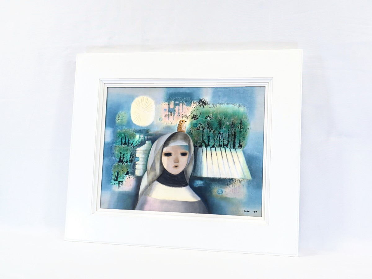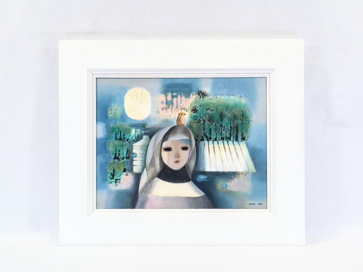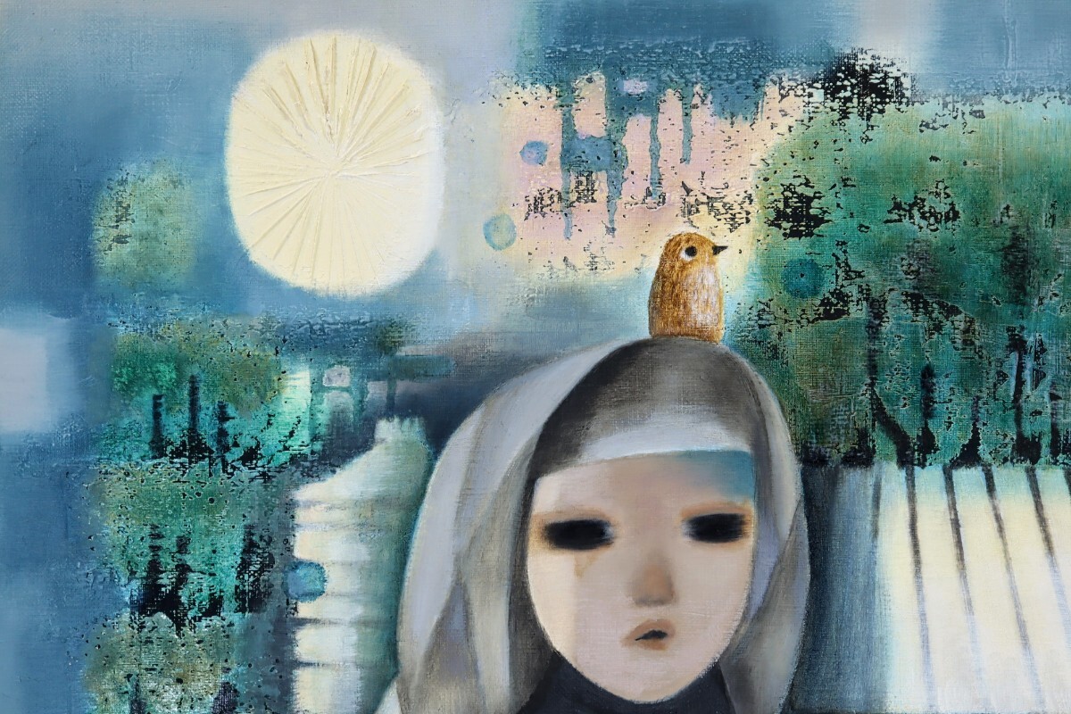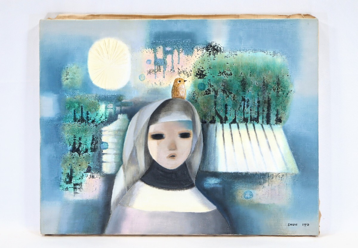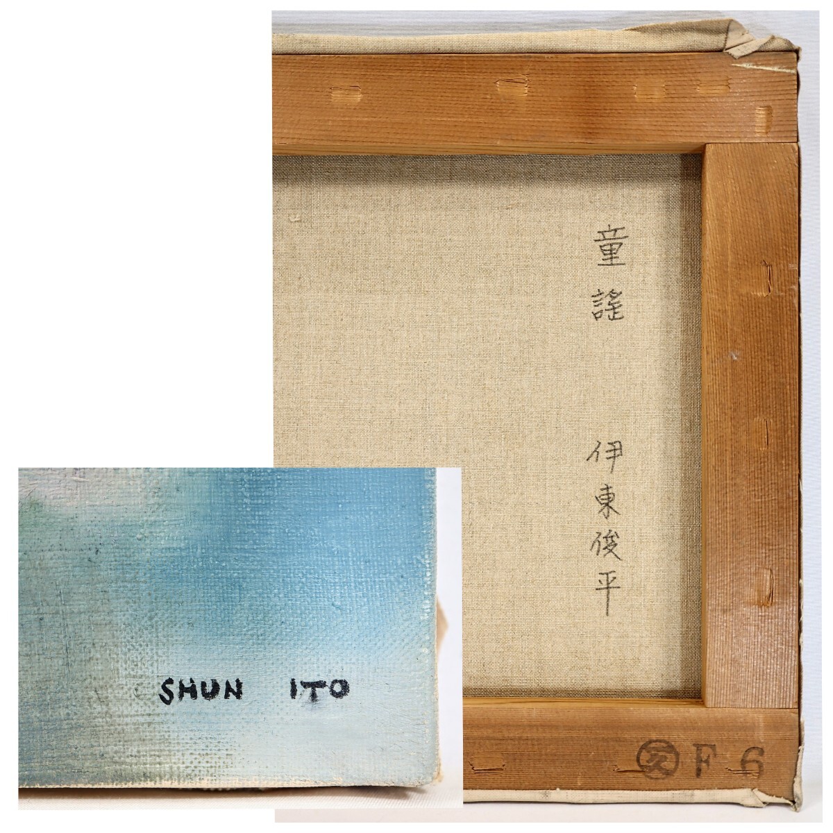 真作 伊東俊平 油彩「童謡」画 41×32cm F6 京都府出身 二科会評議員 京展審査員 東郷青児に師事 人気のモチーフ 独特の質感と色使い 10552