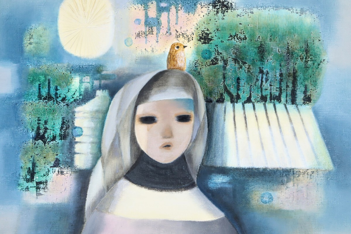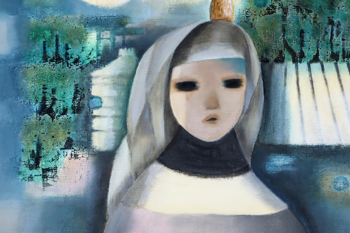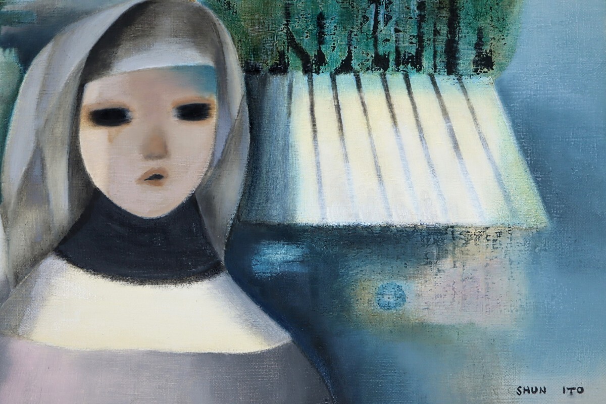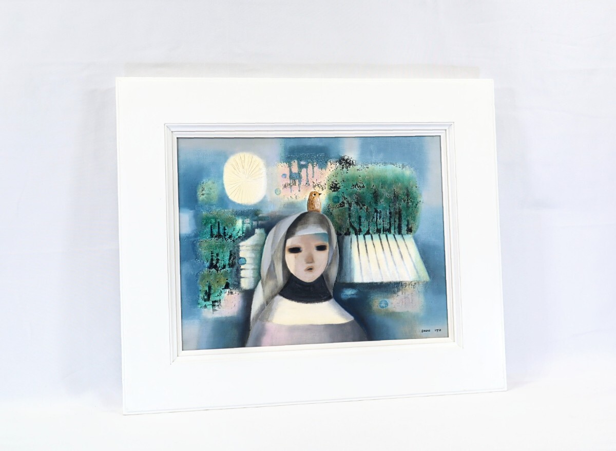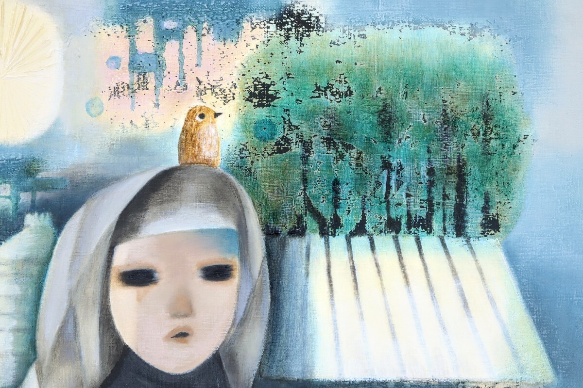 真作 伊東俊平 油彩「童謡」画 41×32cm F6 京都府出身 二科会評議員 京展審査員 東郷青児に師事 人気のモチーフ 独特の質感と色使い 10552