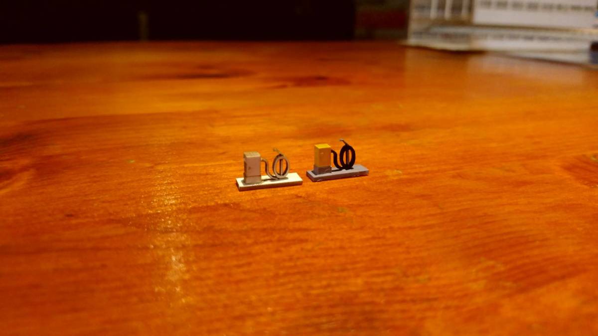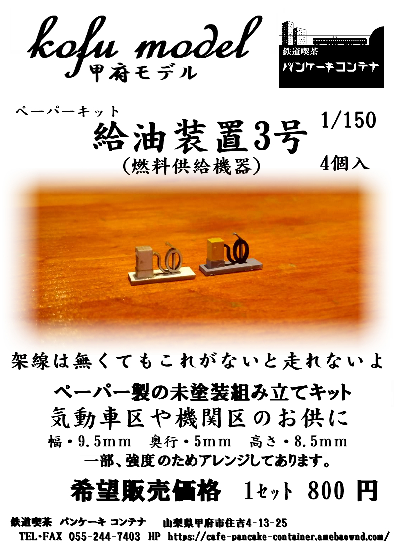 Nゲージの給油装置(燃料供給機器)3号 (4個入)の積荷のレーザー切り抜き済みペーパーキットです。