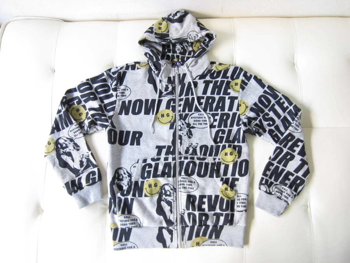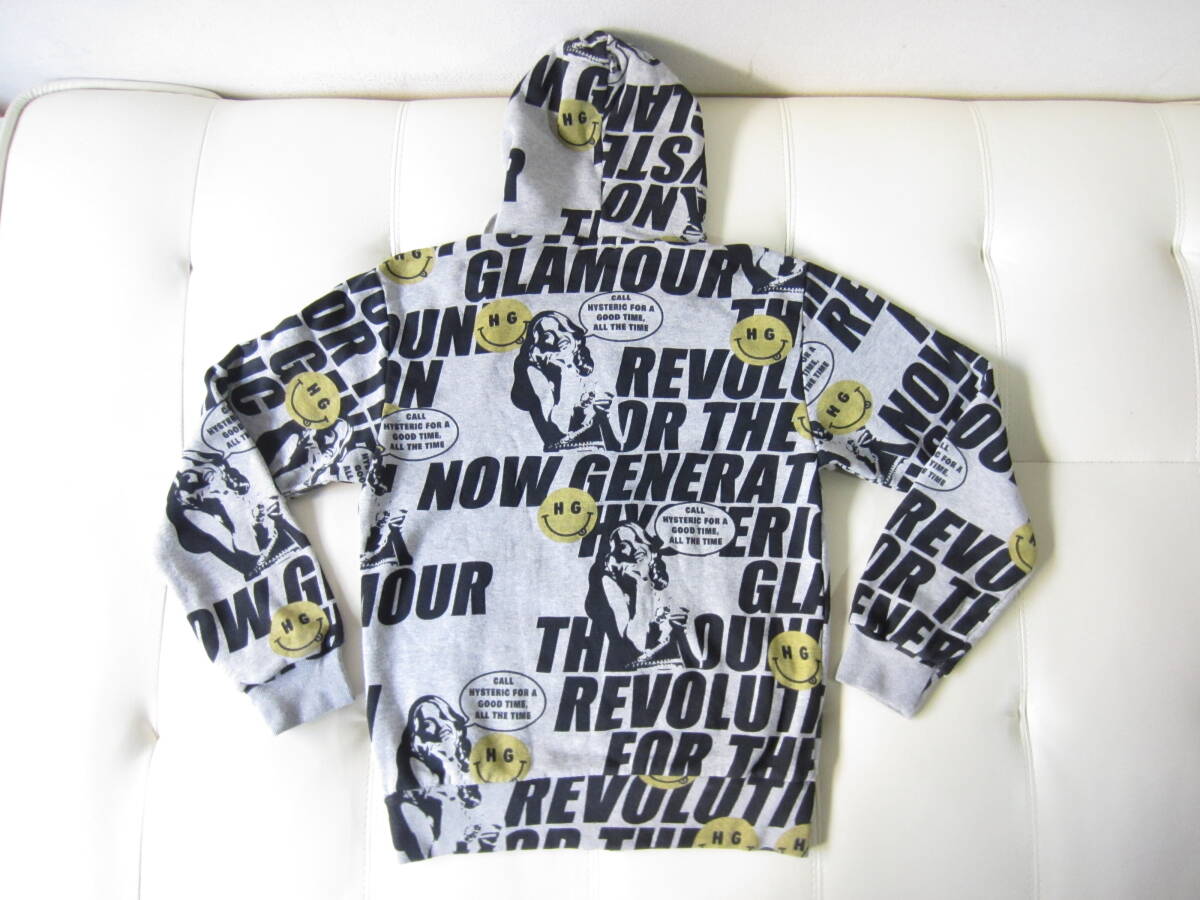 ★【送料込み】「HYSTERIC GLAMOUR ヒステリックグラマー 」SOUND REVOLUTION柄パーカー スマイリー柄(メンズS・グレー)★