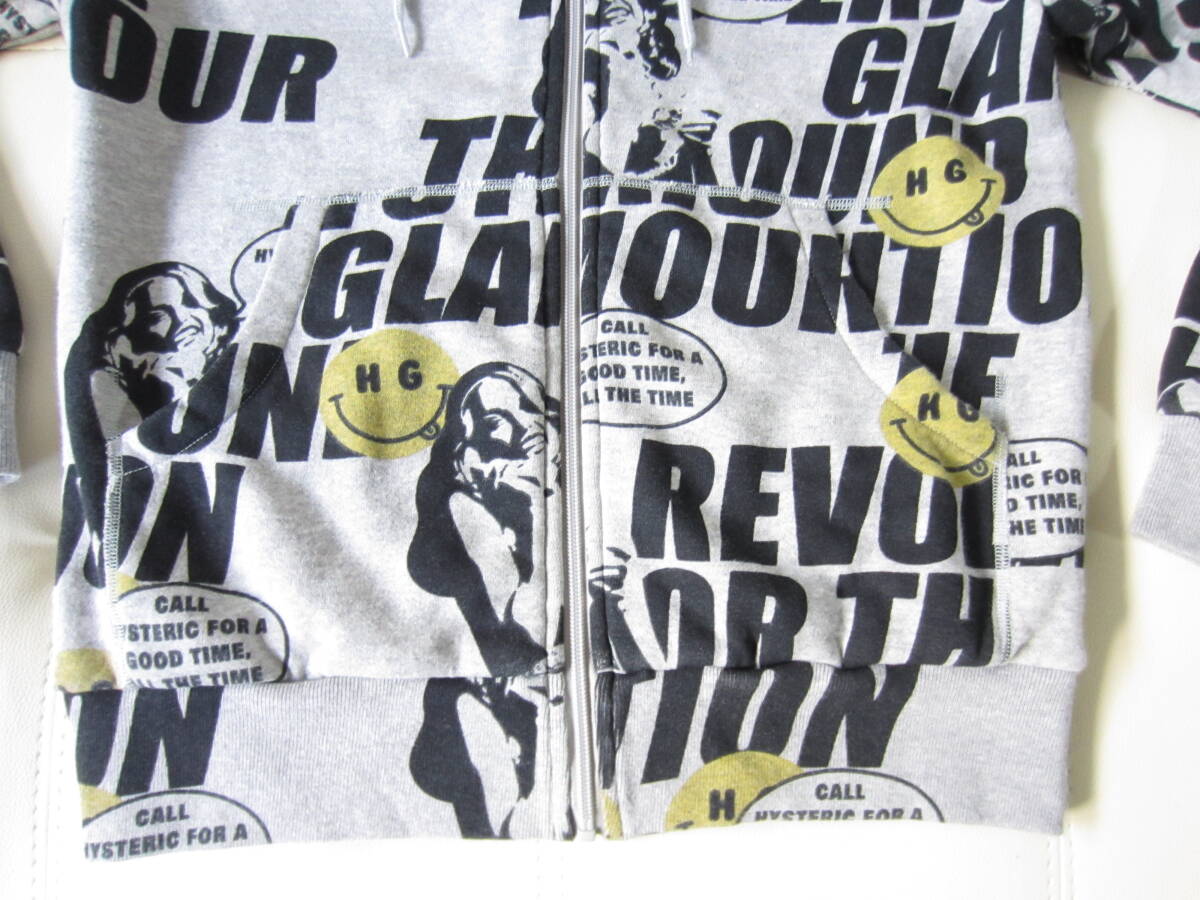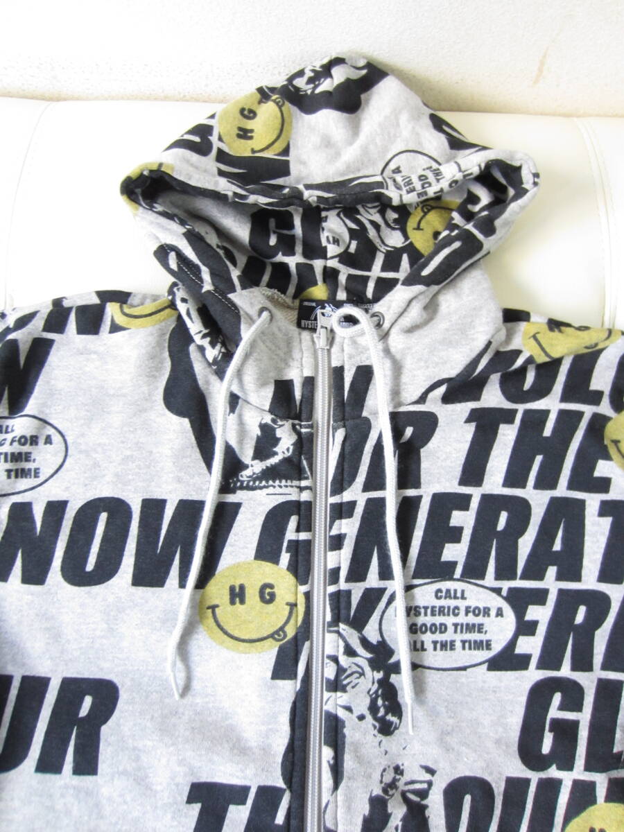 ★【送料込み】美品「HYSTERIC GLAMOUR ヒステリックグラマー 」SOUND REVOLUTION柄パーカー スマイリー柄(メンズS・グレー)★