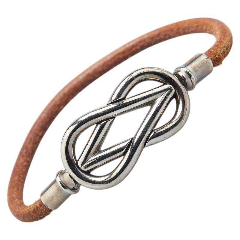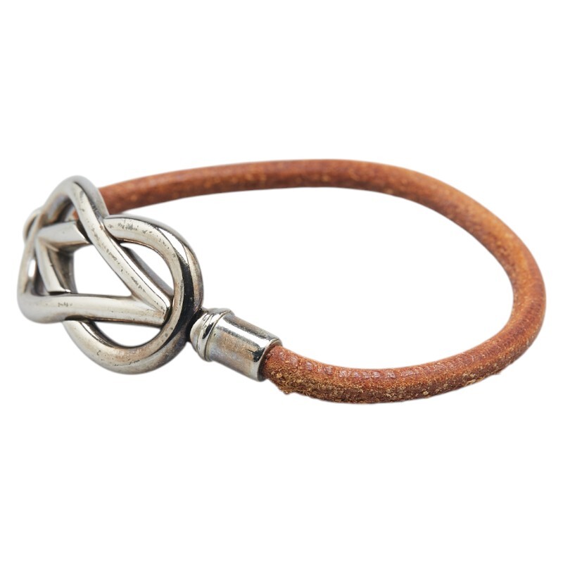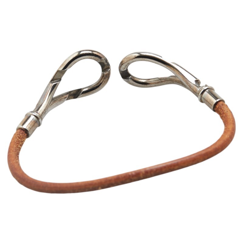 エルメス アタメ ブレスレット シルバー ブラウン メタル レザー レディース HERMES 【中古】