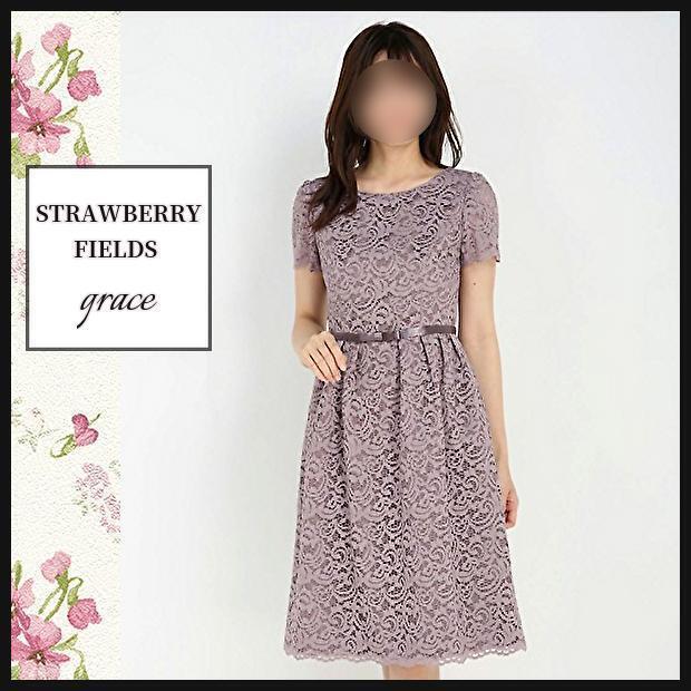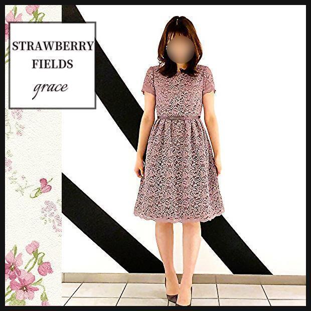 【ストロベリーフィールズ グレース】総レースワンピース ラメ 結婚式 パーティー ドレス STRAWBERRY-FIELDS grace 膝丈 35200円