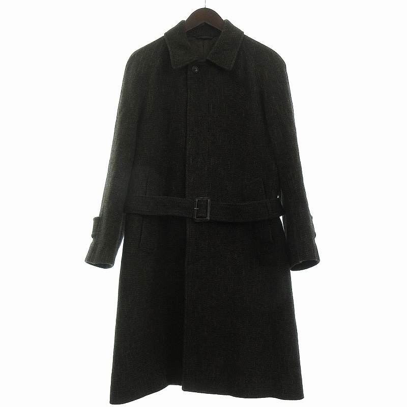 五大陸 gotairiku コート ステンカラー ロング ツイード ベルト付き 長袖 M 茶 ブラウン メンズ