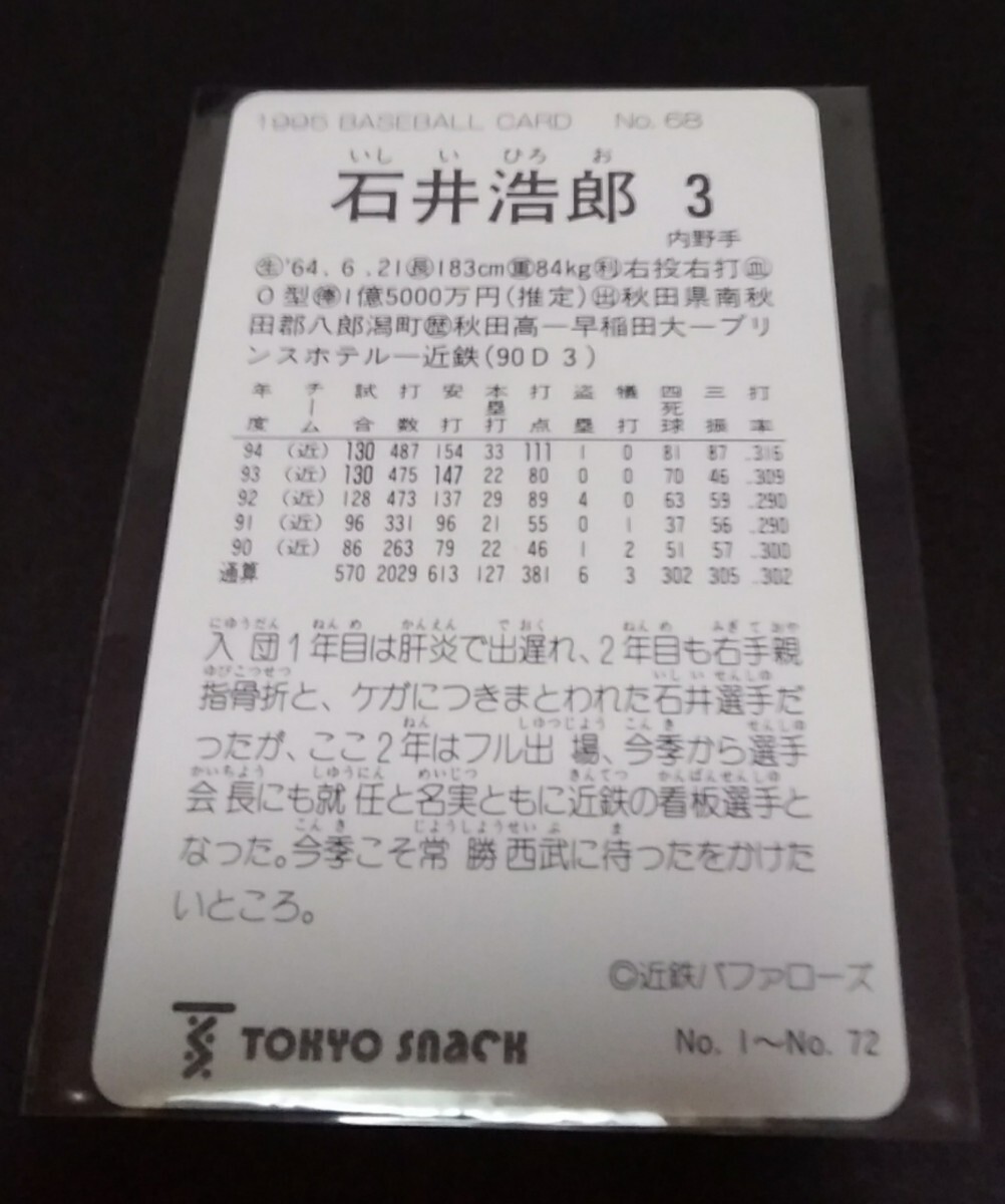 1995年カルビー 石井浩郎(近鉄)No,68。