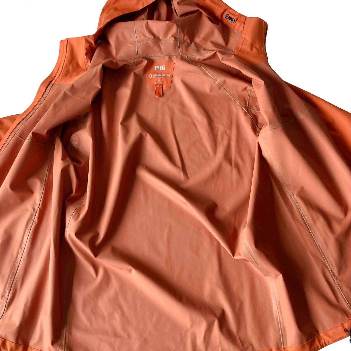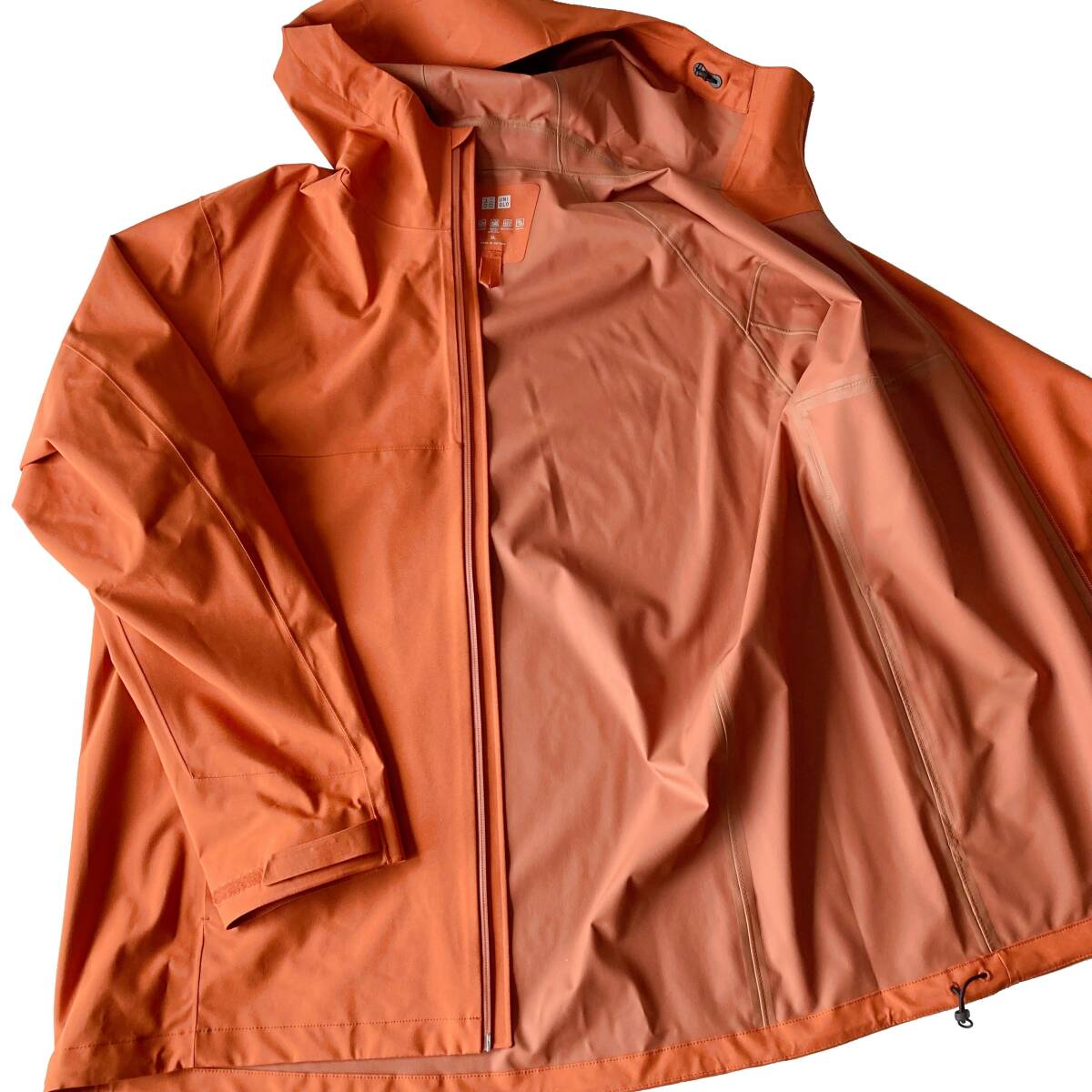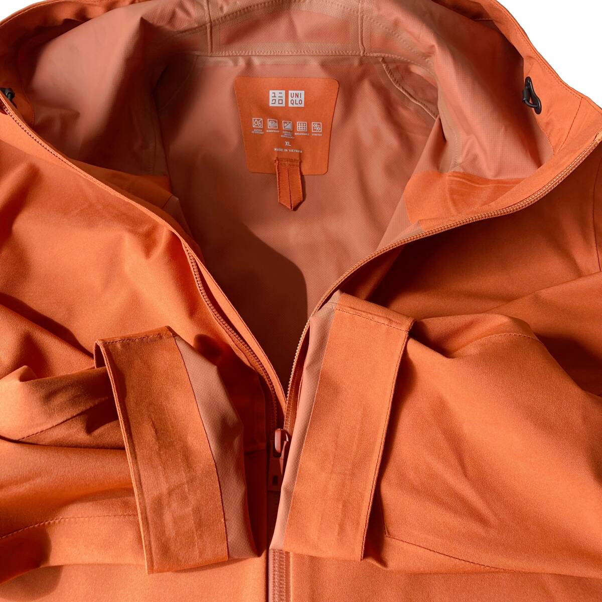 美品 UNIQLO ユニクロ ブロックテックパーカージャケット 3Dカット XLサイズ オレンジ メンズ 防風 防水 ストレッチ 透湿 耐久撥水機能