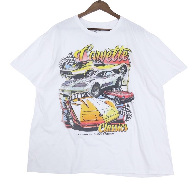 CHEMISTRY クルーネック 半袖プリントTシャツ シボレー メンズUS-2XLサイズ 古着 ホワイト系 tc-0070n