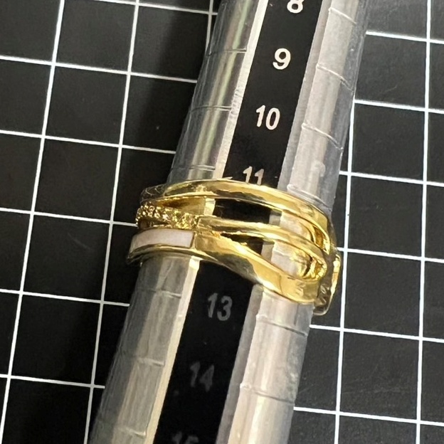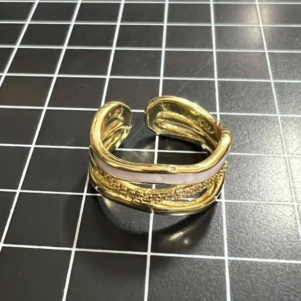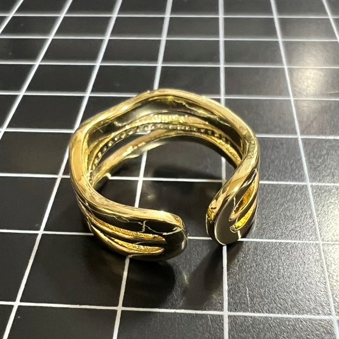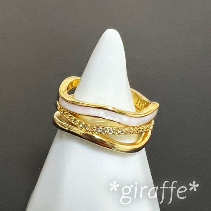 マイクロジルコニアが輝く多重デザインのゴールドリング。