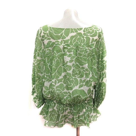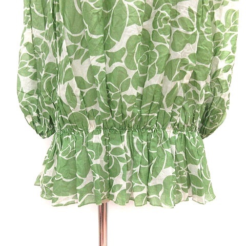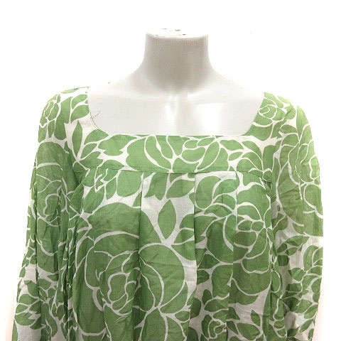 モガ MOGA チュニック スクエアネック 花柄 長袖 2 緑 グリーン 白 ホワイト /MS レディース