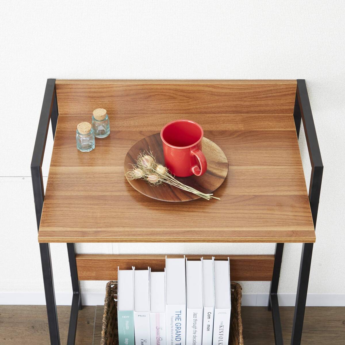 ドウシシャ シンプルデスク 省スペース スリム 幅60 奥行40 パソコンデスク 作業台 ゴミ箱上収納としても L字型天板 軽量 隙間収納 仕事 学習机 リビング キッチン PC ミシン 一人暮らし ブラウン 幅60×奥行42×高さ75cm SD6075-BR