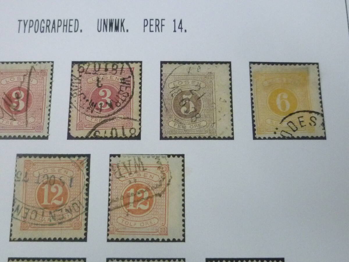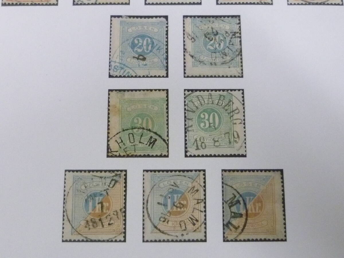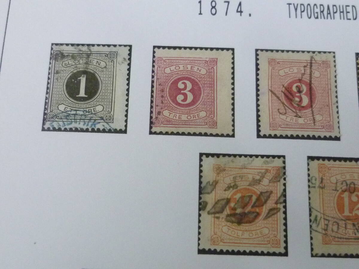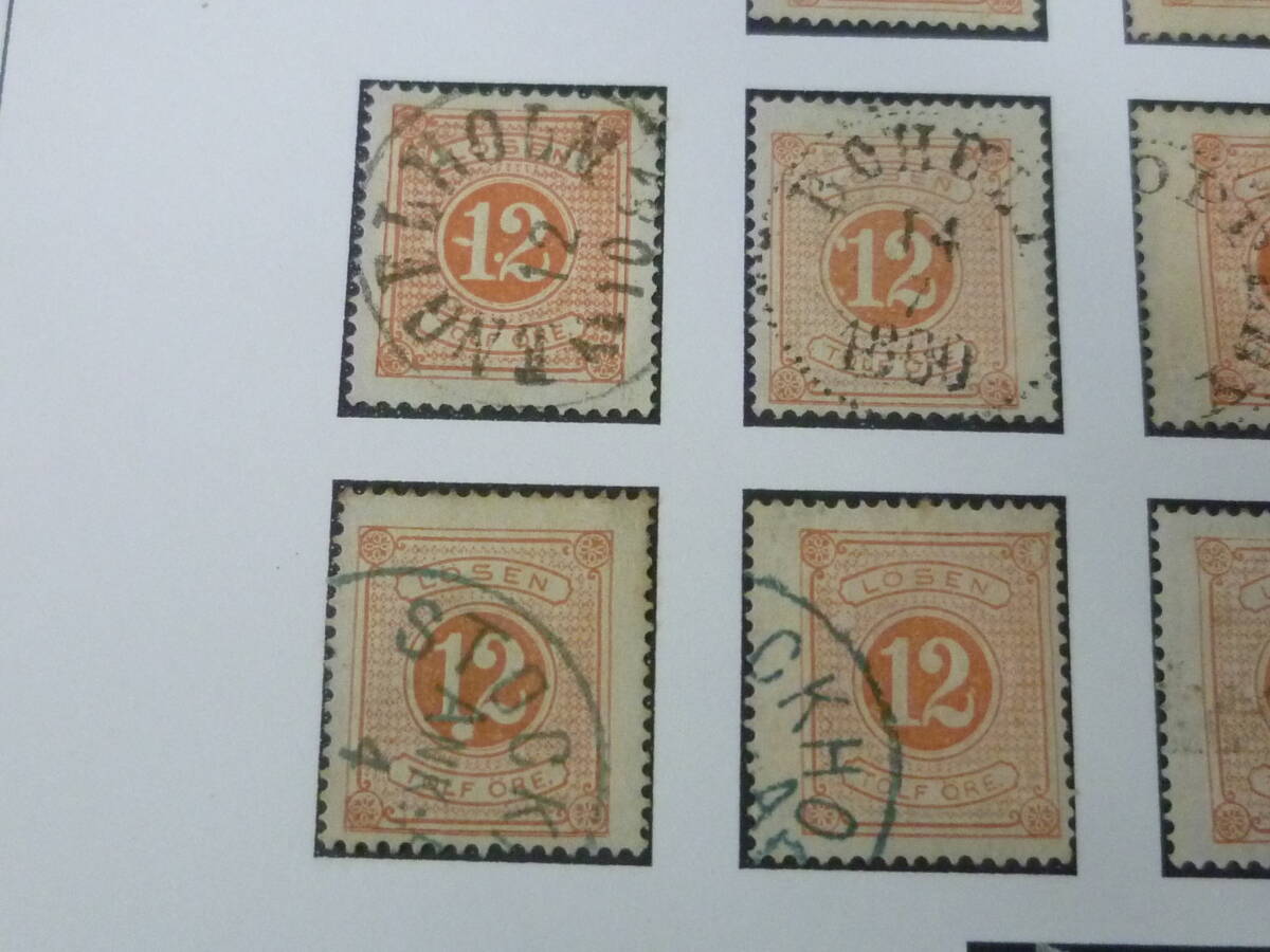 23 A №28 スウェーデン切手 クラシック 1874年 SC#J1-6・9・11 各種バラエティー 計8種 26枚 使用済 【SC評価 $530】