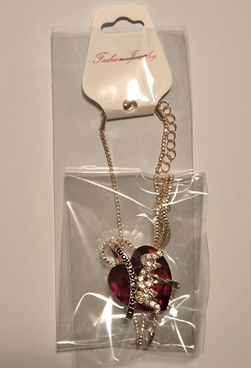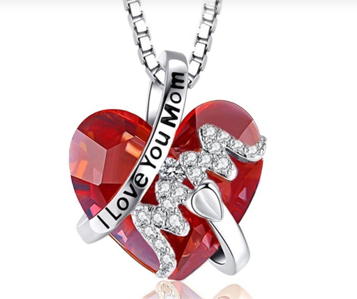 ハートのチャームにI Love You Mom(愛してるよお母さん)と刻まれたネックレスです。
