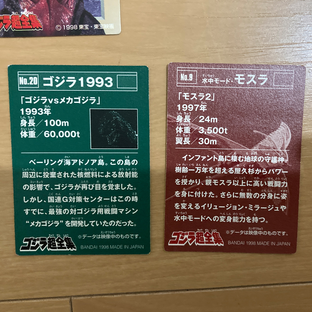 1998年 バンダイ製 ゴジラ超全集付属のミニカードまとめです。