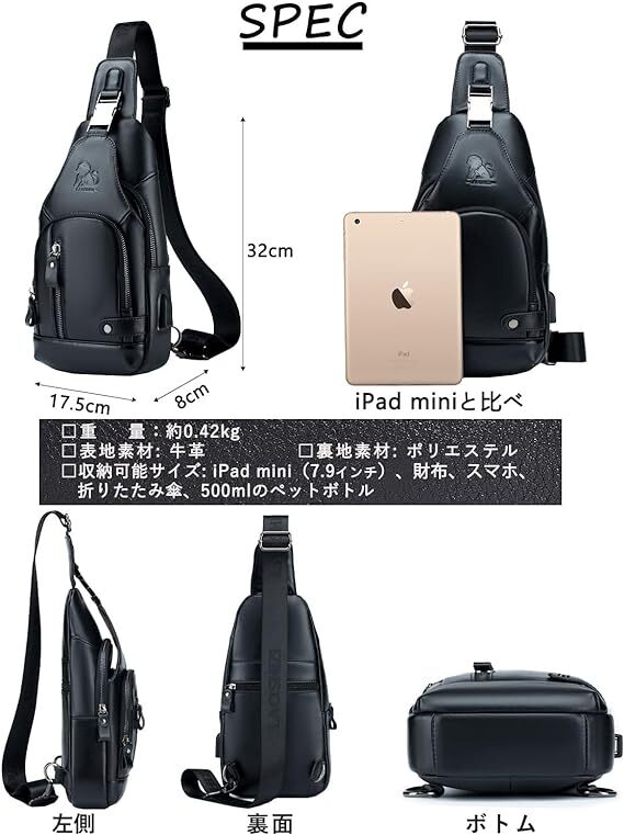 この本革製ボディバッグは、頑丈さと上質さを兼ね備え、日常の様々なシーンで活躍します。