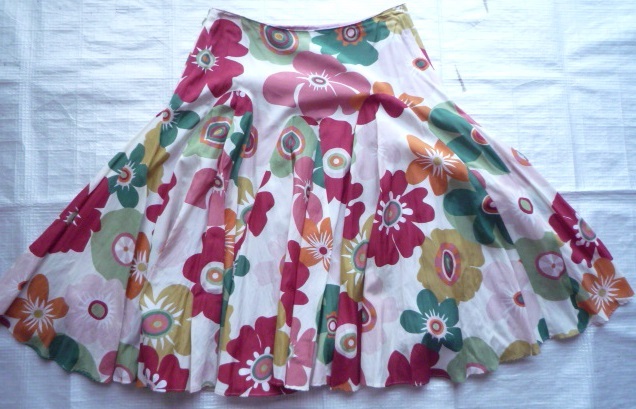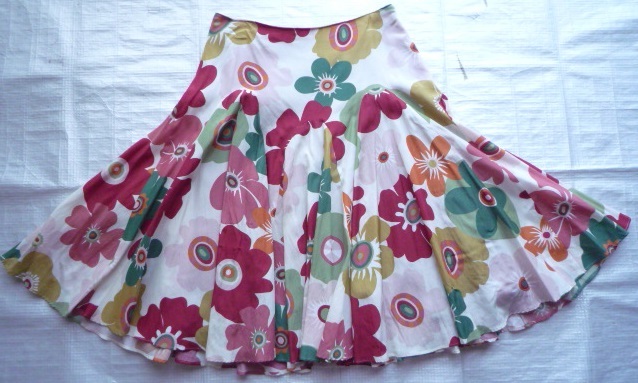 ウエストから少し下辺りから、丸くカットされた生地を足して縫い合わせてあり、 適度なボリュームが出て綺麗です。