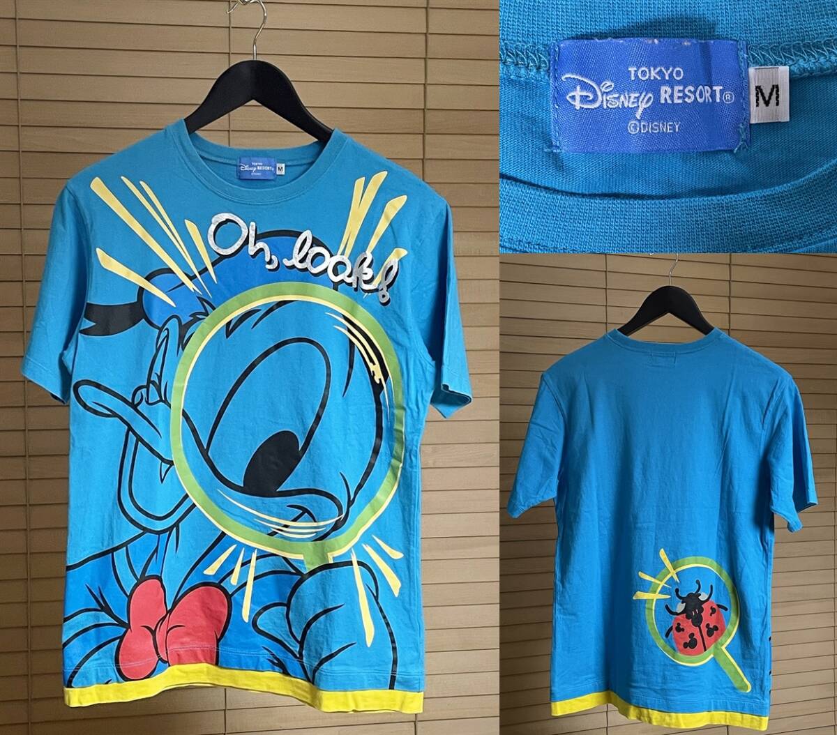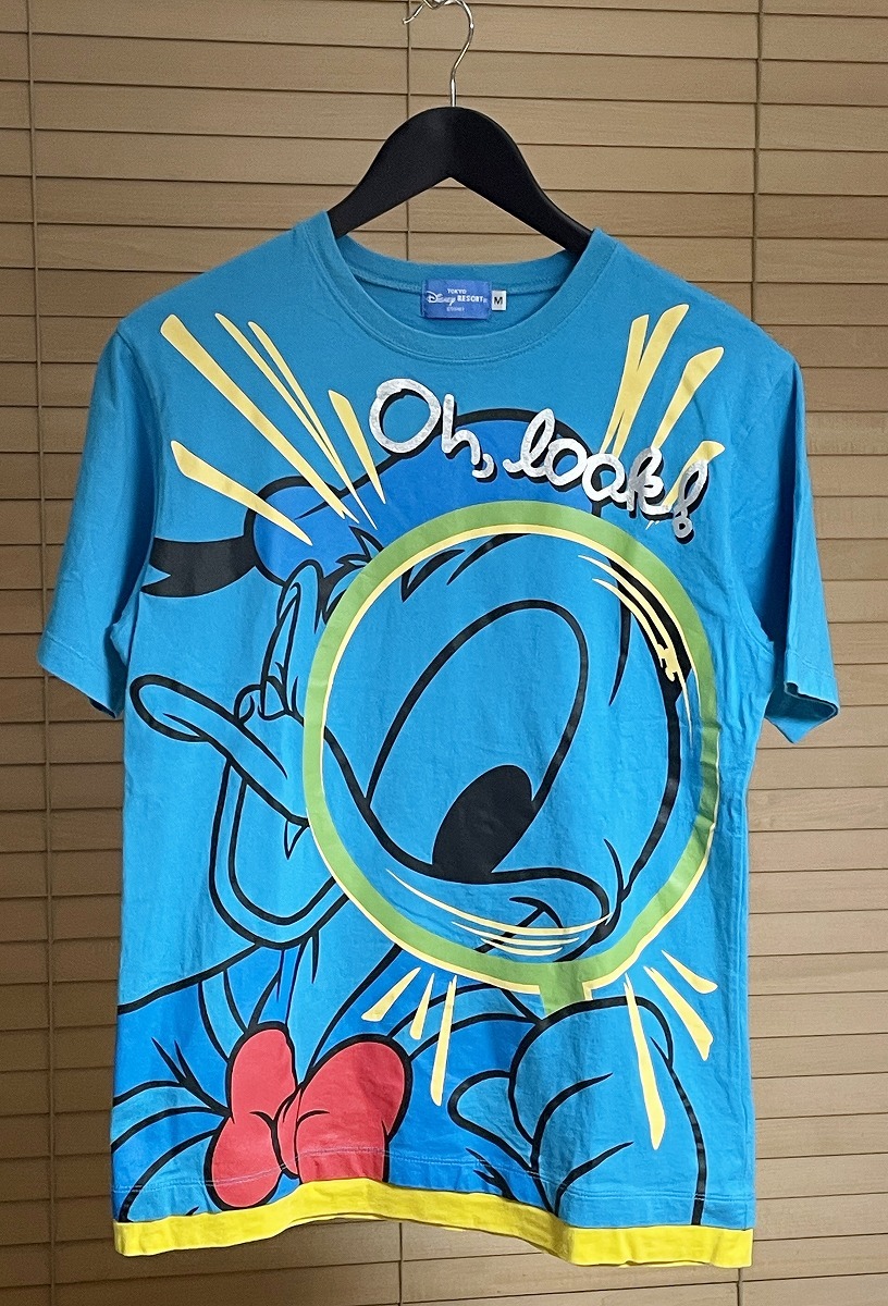 【激安1点のみ 国内正規品】TOKYO Disney RESORT 東京 ディズニーリゾート 限定 両面プリント ドナルドダック 半袖 Tシャツ M ブルー×イエロー系