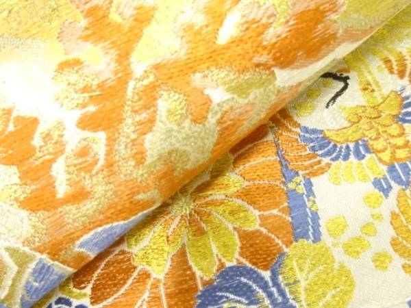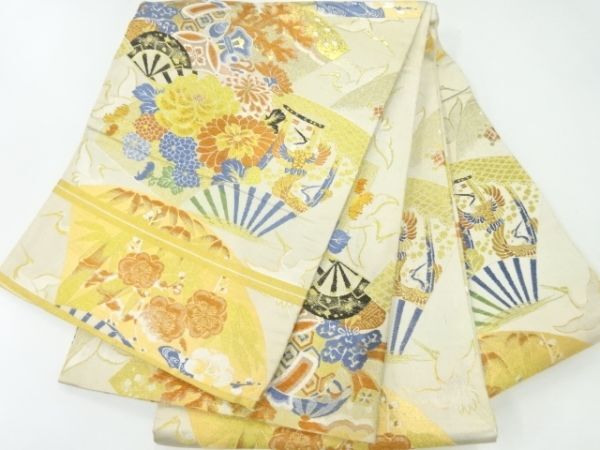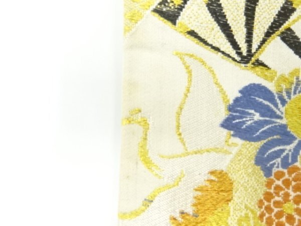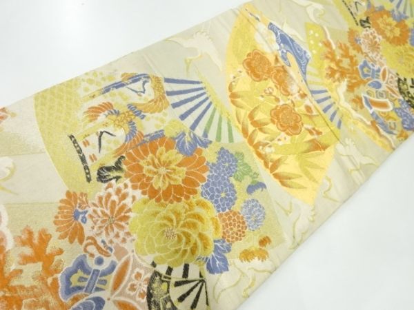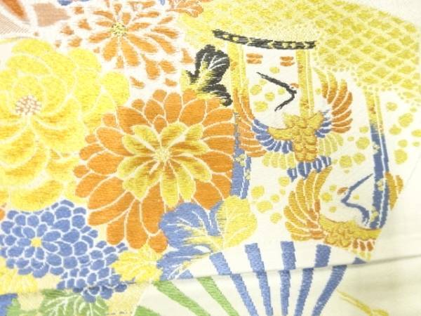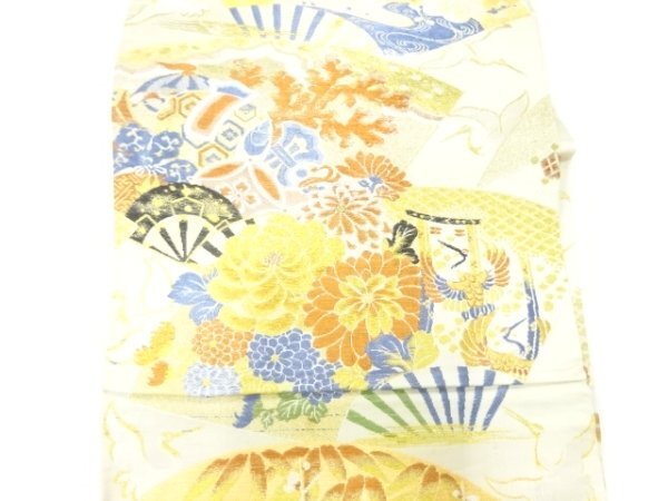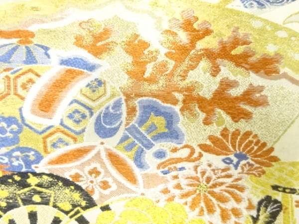 ys7336670; 扇に宝尽くし・花鳥模様織出し丸帯(材料)【アンティーク】【着】