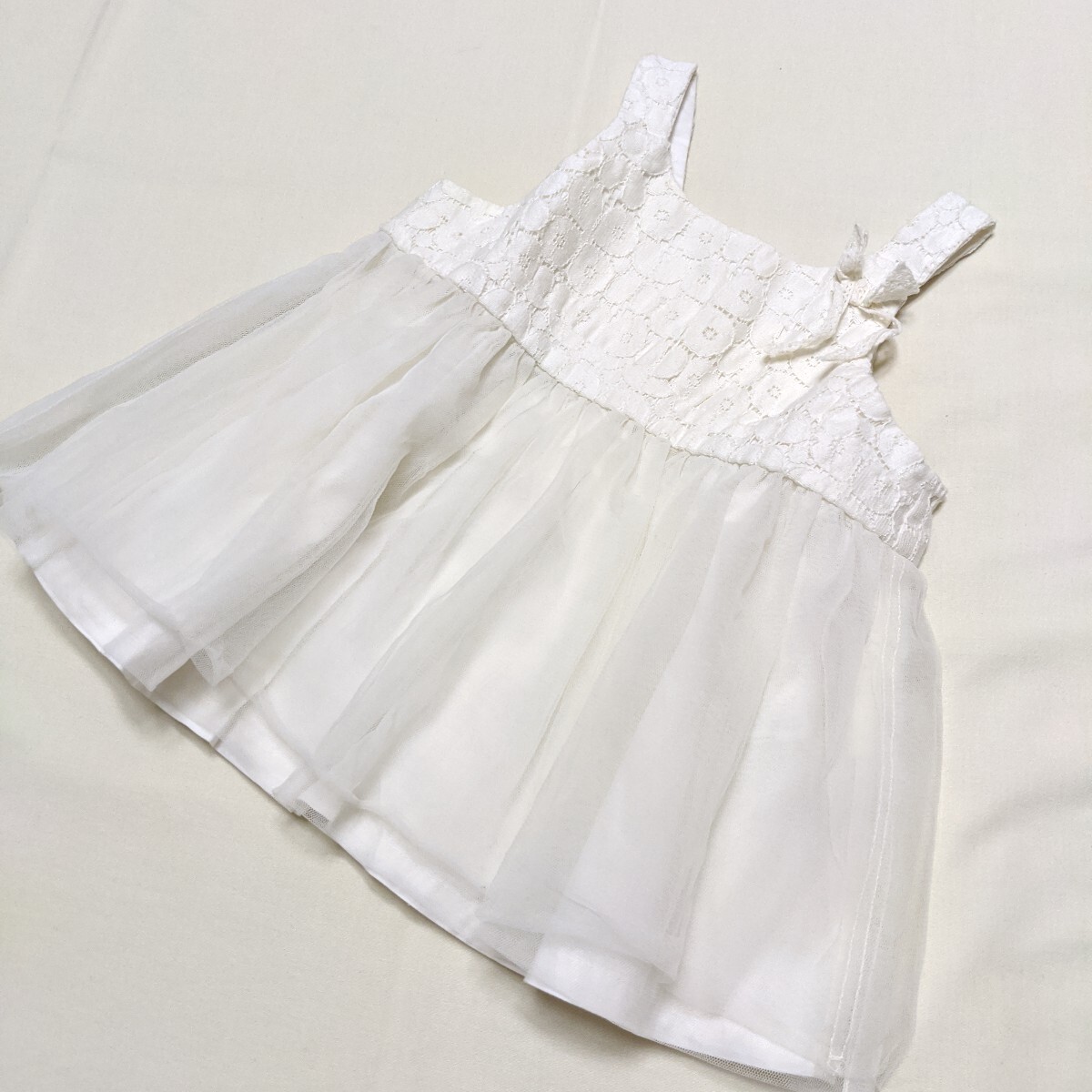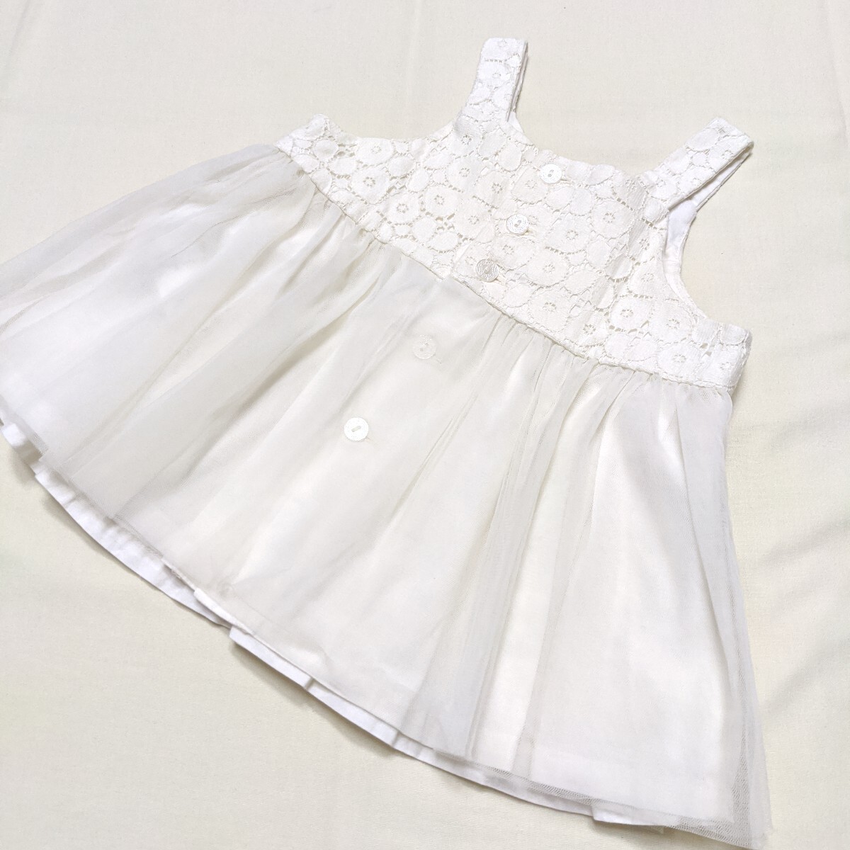 チュールのスカートが可愛らしいジャンパースカートです。