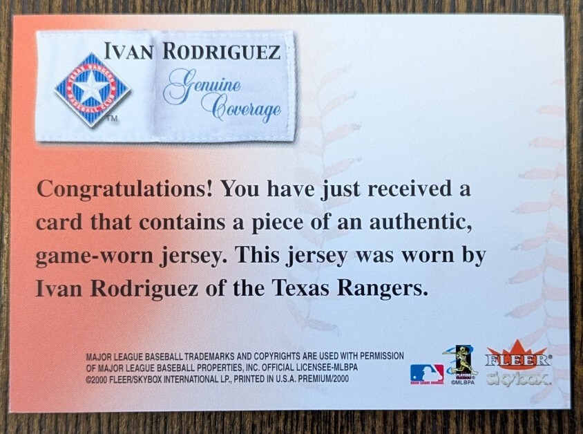 【2000 FLEER】SKYBOX Genuine Coverage テキサス・レンジャース イバン・ロドリゲス Ivn Rodrguez【gamr-worn jersey】