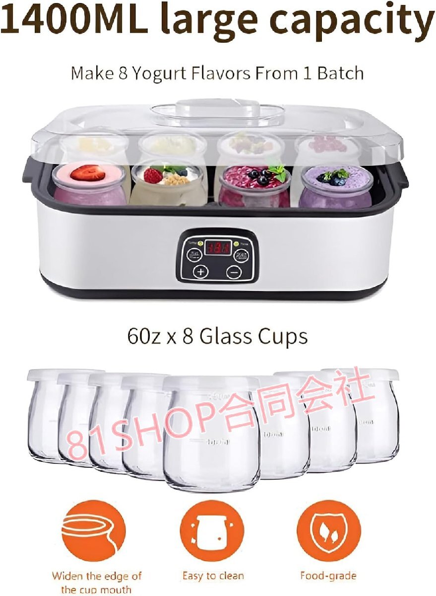 「81SHOP」定温制御 1400ml 自動ギリシャヨーグルトメーカー 8 ジャー付き