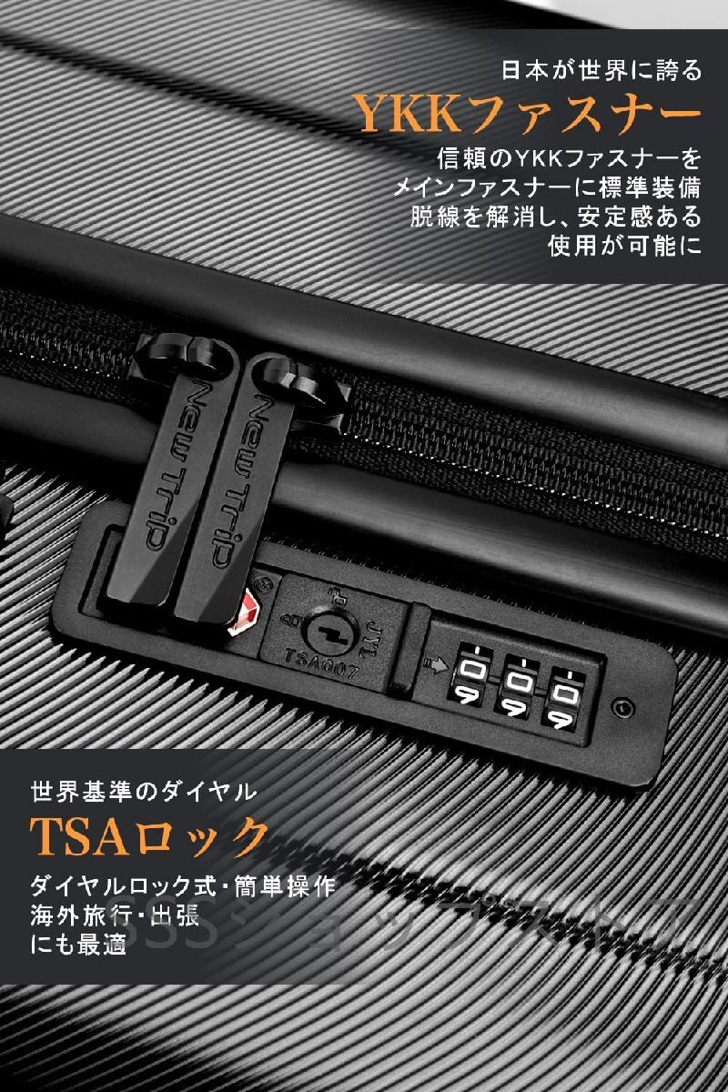 【安心の日本ブランド&1年間保証】New Tripはあらゆるシーンで安心してご利用いただける日本のスーツケースブランドです。高品質にこだわり、アフターサービスにも対応しています。通常使用で1年以内に不具合が発生した場合、無料で修理また交換させていただきます。万が一、初期不良があった場合は迅速に新品交換させていただきます。