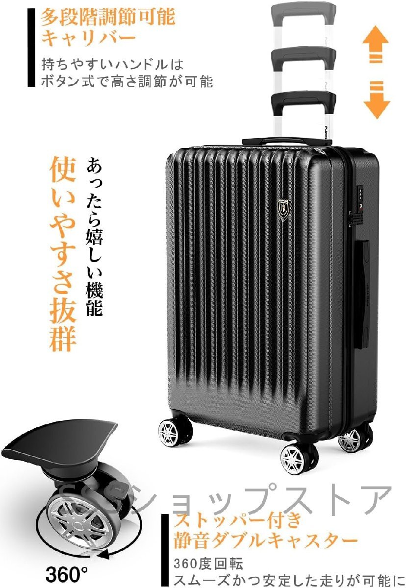 ストッパー付き スーツケース 機内持ち込み キャリーケース Sサイズ キャスタロック 軽量 YKKファスナー 物掛けフック 耐衝撃 キャリーバッ