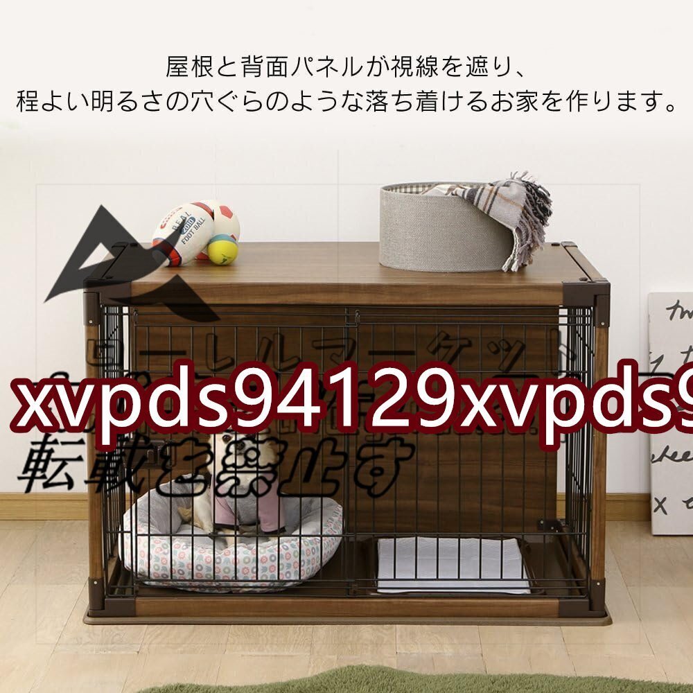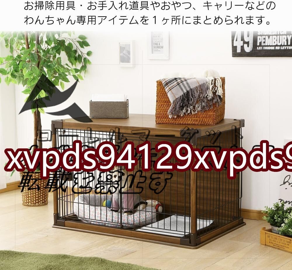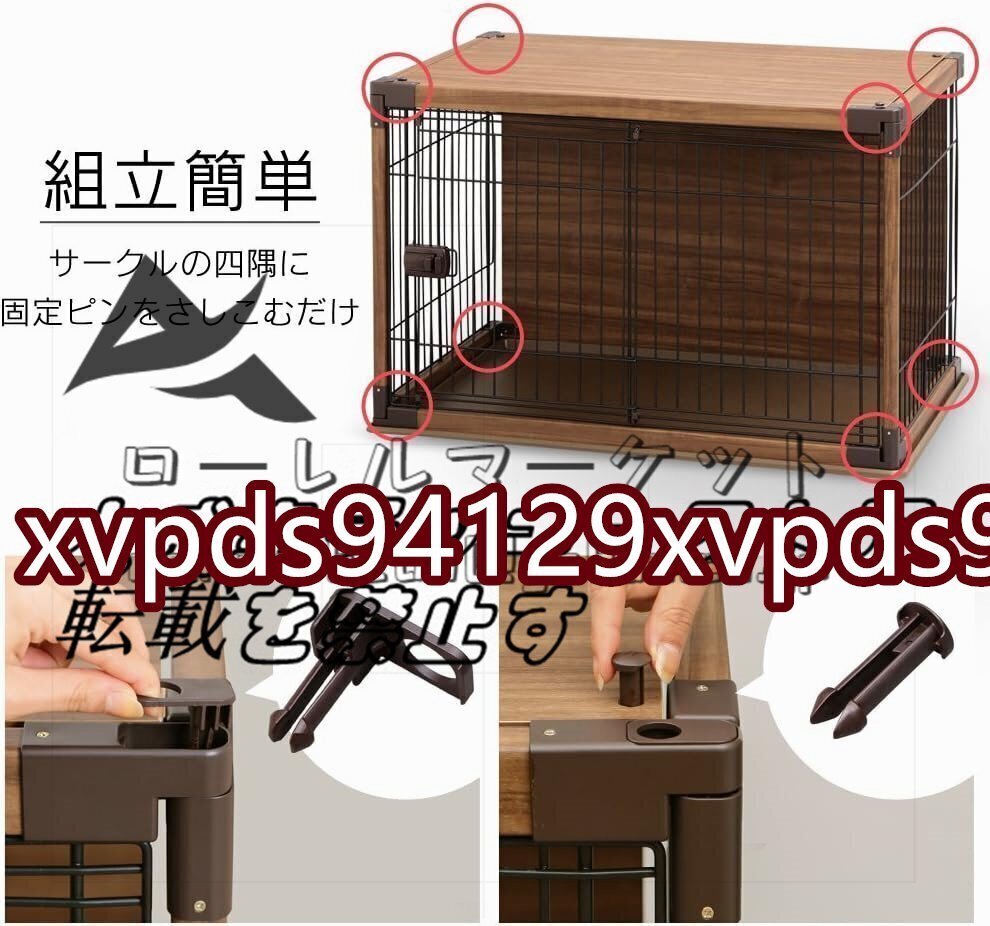 愛犬も人もくつろげる空間に。天板と背板はナチュラルな木目調で、お部屋に馴染む上質なデザインです。◆落ち着けるお家を愛犬に犬の先祖は穴を掘って暮らしていたため、本能的にうす暗い場所が落ち着くと言われています。中はくつろげる余裕のサイズ。屋根と背面パネルで囲まれた、愛犬が落ち着ける空間を作ります。◆日々使うものは天板の上に厚みのある天板は安定感も抜群。お掃除用具やおやつなどをまとめて置けて便利。◆お世話しやすいつくり【スライド扉】 置き場所をあらばない、省スペース設計。【天板は取り外しOK】 幅のあるものは上からも出し入れできます。【背面パネル】 お部屋の壁への汚れを防ぎます。◆ピンを差し込むだけのかんたん組み立てサークルの四隅に固定ピンを差し込むだけ。◆お手入れはふくだけ【丸洗いできるトレー】 底のトレーは取り外して丸洗いもできます。【汚れに強いパネル】 樹脂加工でキズが付きにくく、汚れもサッとふき取れます。★お客様組立★