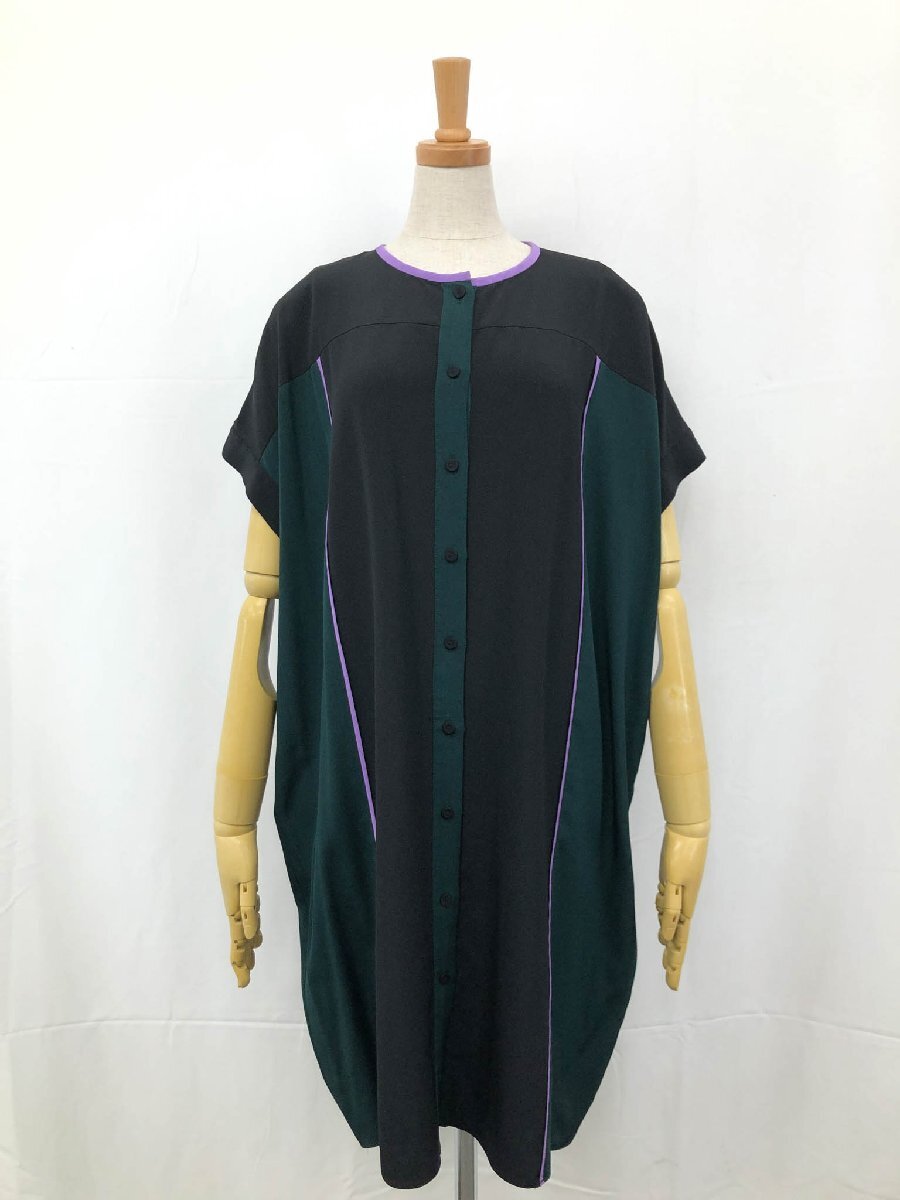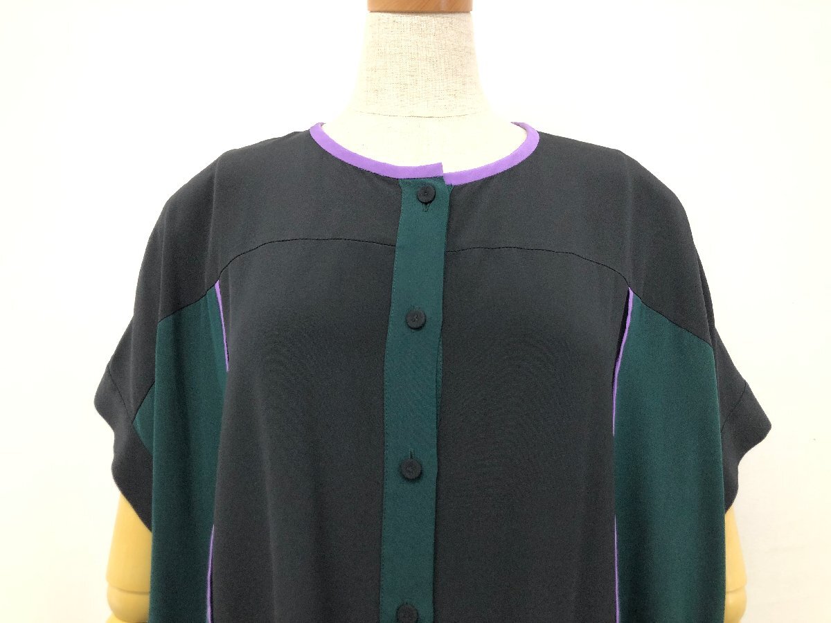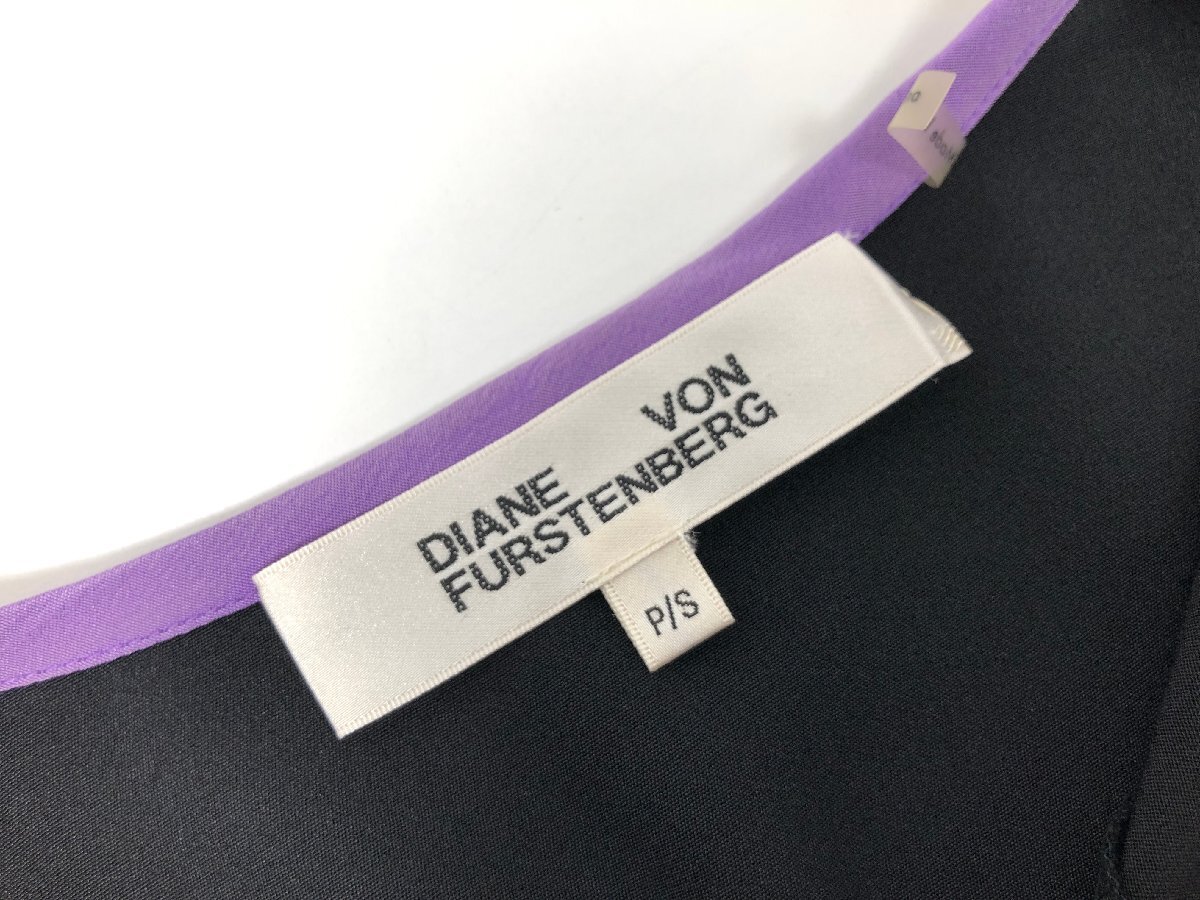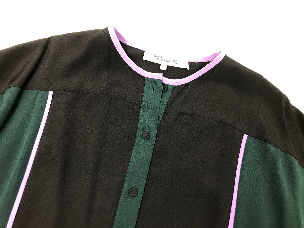 HH極美品【ダイアンフォンファステンバーグ】12157DVF シルク100% ノーカラー シャツワンピース(レディース) P/S ブラック系 ◯17LO3630◯