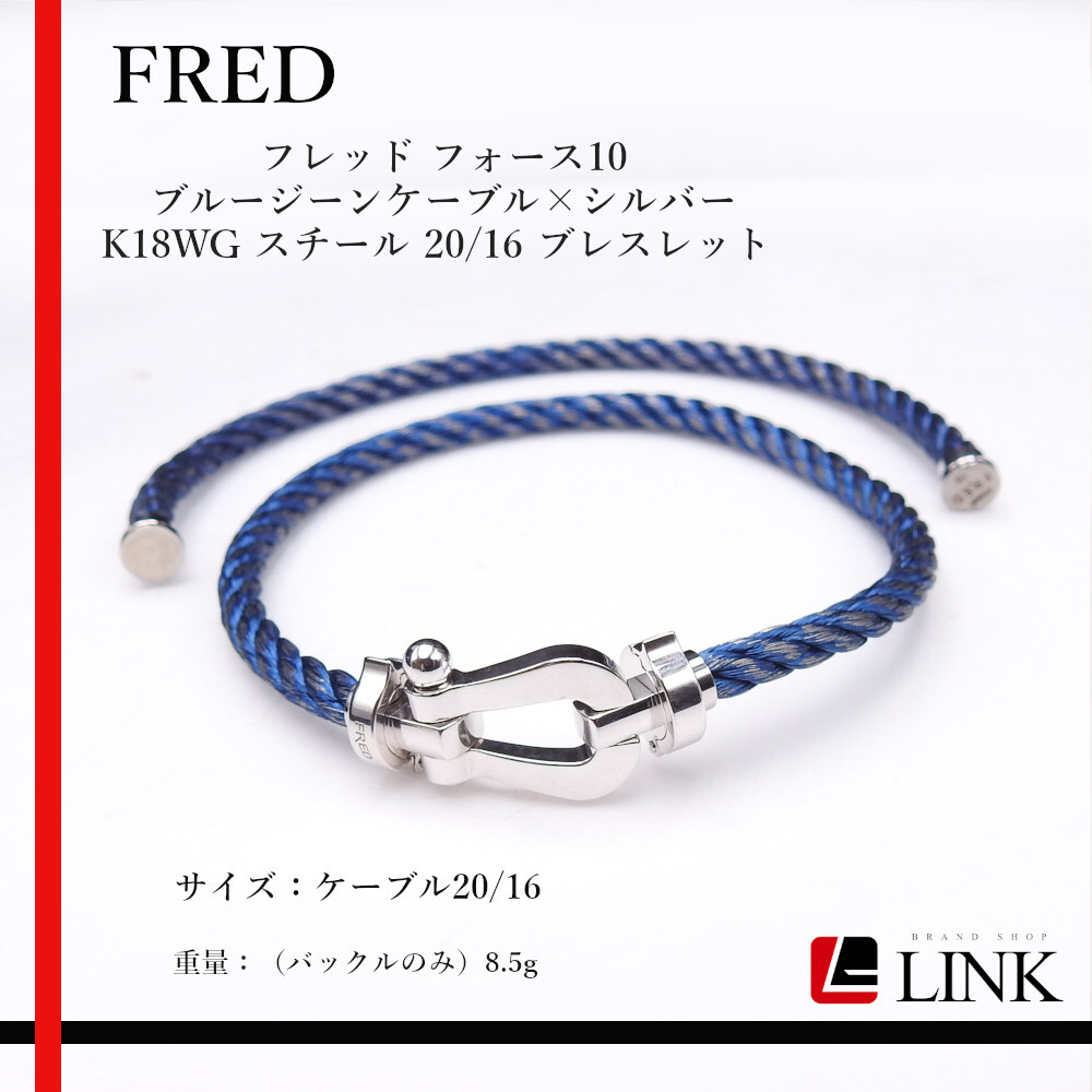 替えベルト付 FRED フレッド フォース10 K18WG 750 ブレスレット 純正品ブルージーンケーブル(ダメージ加工)×シルバー