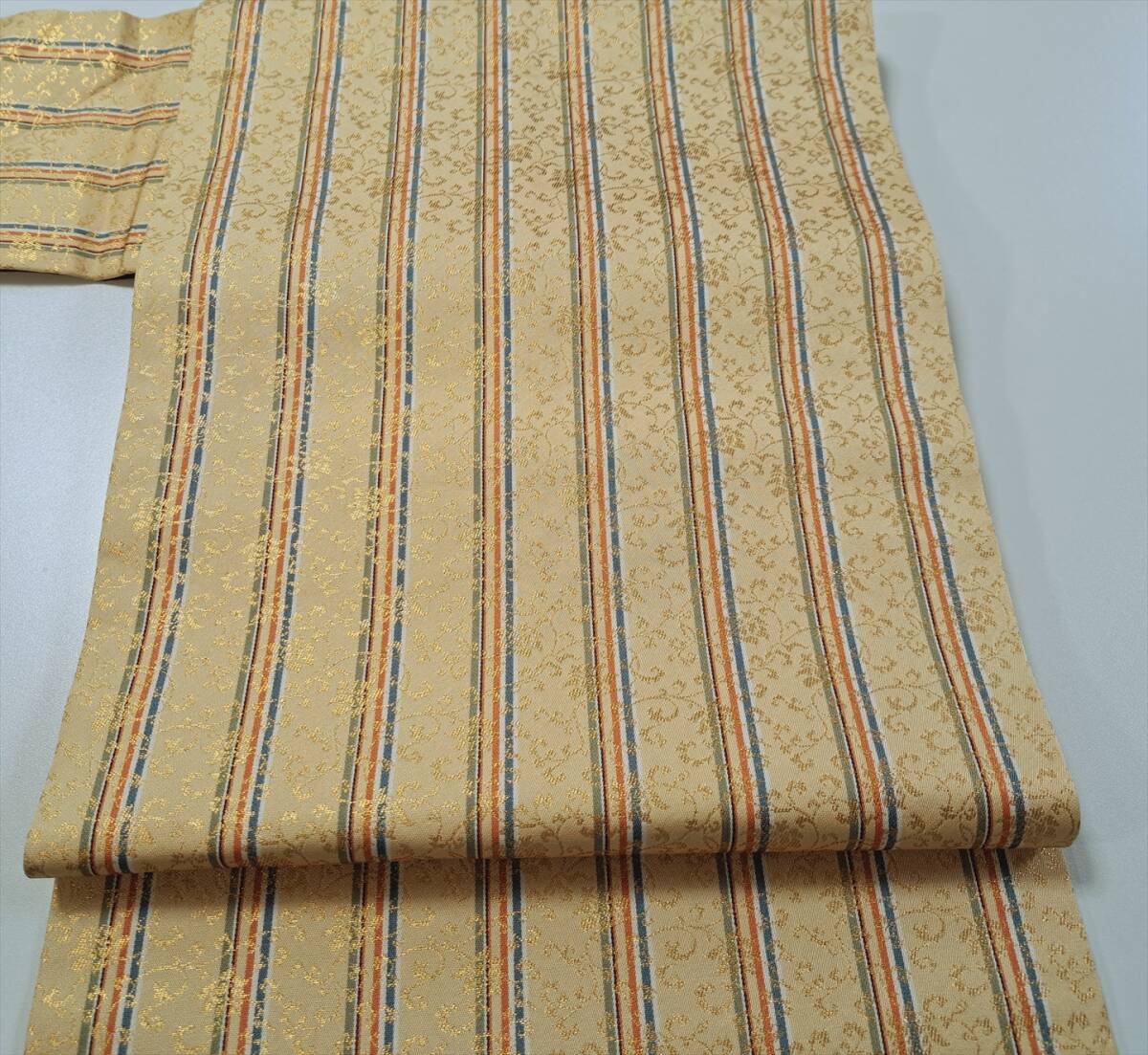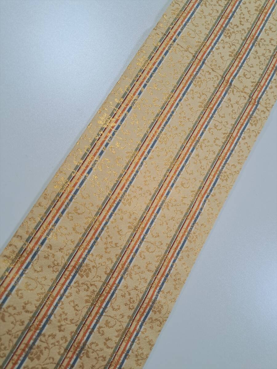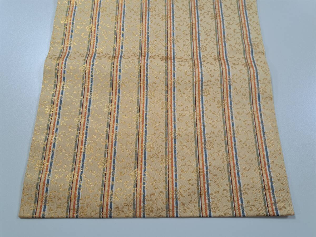 即決■着物の越田■幅30.5長さ367.5 正絹 名古屋帯 ★美品★ 縞 花唐草 名古屋仕立て 金糸有 C◇ひ13J16